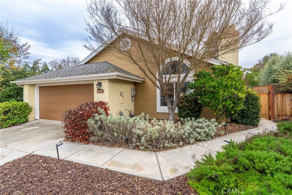 Welcome to 940 Austin Court! Tucked at the end of a cul-de-sac in an established Paso Robles neighborhood, this home offers space, contemporary updates and lifestyle on a generous .225± acre lot. A mature landscaped approach creates an impactful first impression, drawing you to the front door. Inside, 1,756± sq ft of living space showcases an open-concept main floor with vaulted ceilings and an abundance of natural light. The dining area features a large picture window overlooking contemporary landscaping, while the living room centers around a gas fireplace with stacked stone surround that could be used for relaxed evenings or hosting guests. The kitchen has been thoughtfully improved in 2025 with newly installed cabinets and hardware, contemporary black subway tile backsplash, updated counters, single deep-basin sink, stainless steel appliances and a custom built-in buffet/coffee bar with decorative glass-front hanging cabinets"”blending function with design. An updated sliding glass door with integrated pet door connects the kitchen to the rear yard for seamless indoor-outdoor living. The first floor is complimented with engineered wood floors in the living room, dining, and kitchen areas, and includes indoor laundry, 2 guest bedrooms plus a full guest bath for family, guests or home office needs. Upstairs, the private primary suite provides separation and comfort, featuring a spacious layout and ensuite bath with dual vanities. Outside, the rear yard is a space for versatility with DG walkways, a flagstone paver patio and an accent olive tree framed by stacked pavers. The oversized side yard offers ample room for potential entertaining, gardening projects or future customization. A 2-car garage, newer energy efficient dual paned vinyl windows throughout and solar with an EV charger may add efficiency and possible long-term value. Explore Paso Robles' Downtown City Park, the hip industrial vibes of Tin City, and the iconic Sensorio Field of Lights, this home puts the Central Coast at your doorstep.