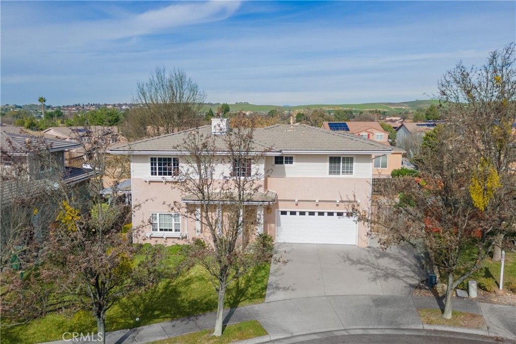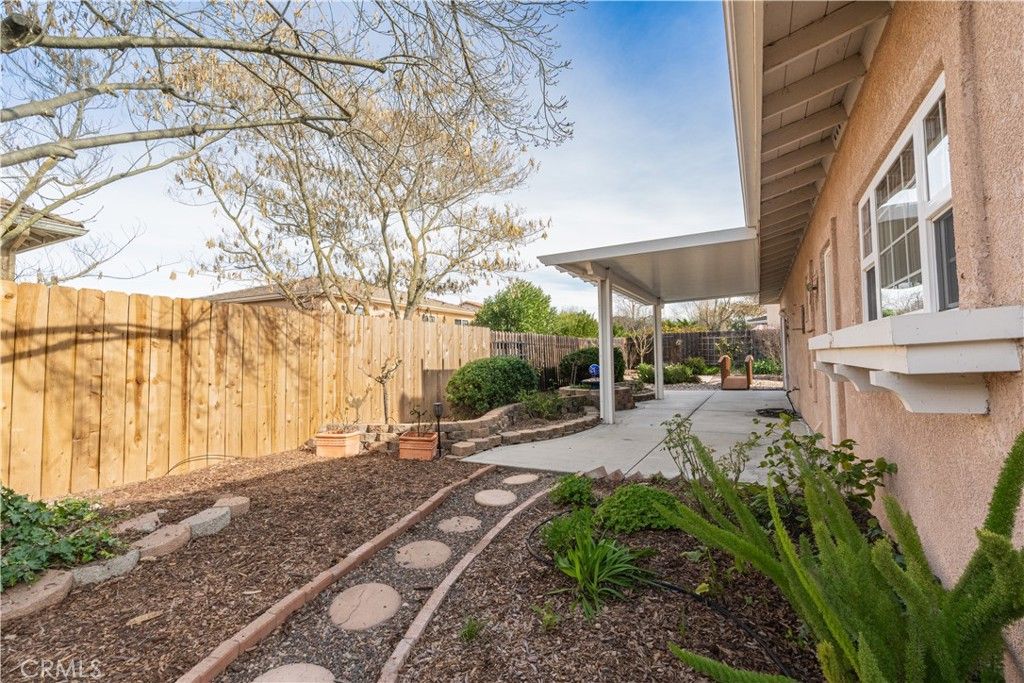 Pristine Paso Robles Home with Main-Level Primary Suite! Welcome to this beautifully maintained residence offering 2,030 square feet of thoughtfully designed living space. This 3-bedroom home includes a versatile bonus/office room and 2.5 baths, ideal for both comfortable living and flexible work-from-home needs. The primary bedroom is conveniently located on the main floor and features double closets, dual sinks, a separate shower and a relaxing soaking tub. The spacious living and dining areas showcase high ceilings and an electric fireplace, creating an inviting and open atmosphere. Some of the upgrades include fresh interior paint throughout, new carpet in the upstairs bedrooms, and engineered hardwood flooring. The updated kitchen is equipped with quartz countertops and a breakfast bar, perfect for casual dining and entertaining. Abundant storage is found throughout the home, including multiple linen and storage cabinets. Additional highlights include a two-car garage with extra driveway parking, a water softener, and serene, beautifully landscaped yards with multiple patio areas and convenient side yard storage area. This immaculate property is truly move-in ready and represents an exceptional opportunity in Paso Robles. Disclaimer, virtual staging has been added to some of the photos.