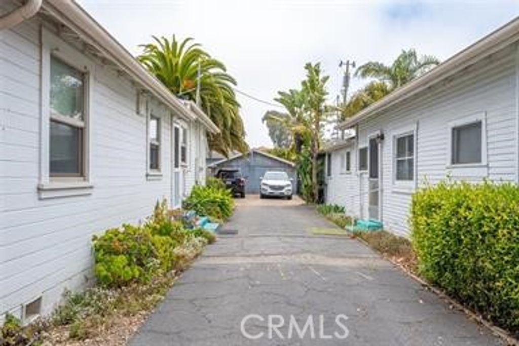 Opportunity knocks with this possible development property in the downtown core of morro Bay. This vintage duplex has approved plans for a 3rd unit, plus the property may have an additional ADU and a Jr. ADU on the property. The current unit mix consists of a 2/1 and a 1/1 free standing units with each having individual yards and a rear two car garage. The roof and rain gutters were recently replaced and the units bring great rents, being so close to the Embarcadero. This property has fantastic upside potential. This property also qualifies for a short term vacation rental license.