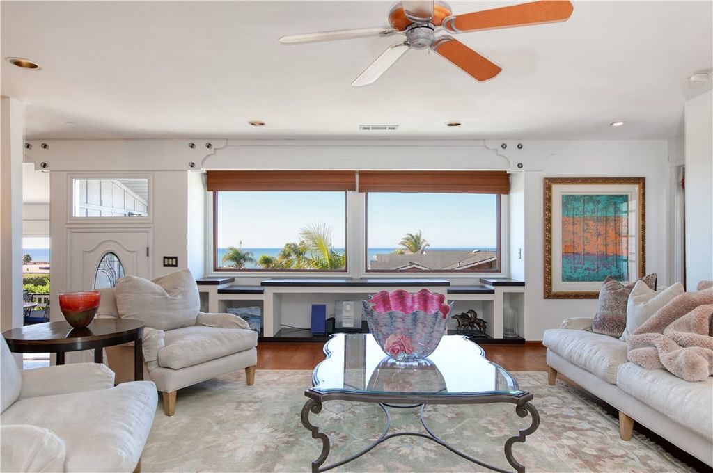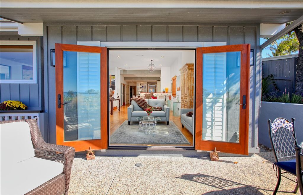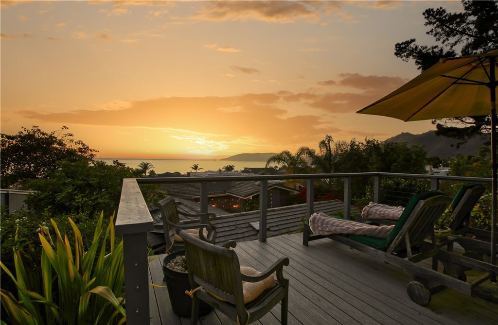 Enjoy ocean breezes and coastal views from this beautifully appointed Shell Beach home in the highly sought after Sunset Palisades neighborhood. This is a rare opportunity to own a thoughtfully designed 3-bedroom, 3-bath home situated on a spacious professionally landscaped corner lot that offers the utmost in privacy and comfort. With approximately 2,450 square feet of living space, this one-of-a-kind coastal residence delivers timeless charm and refined style throughout. From the moment you arrive, you will appreciate the timeless curb appeal of the classic Cape Cod style, mature landscaping and the welcoming front patio for soaking in the sunset vistas over the Pacific. The beautifully designed interior space features ocean views from the entryway, sitting room, dining room, kitchen, living room, and front primary bedroom. The home features three luxurious bedrooms, two of which are spacious and relaxing primary en-suites. The first primary suite offers stunning ocean views from the private deck with extensive built in shelving, dual vanity sinks, a cast concrete countertop with a lavish separate walk in shower and jetted bath. The second suite is secluded in the rear of the home with a cozy corner fireplace and opens to a charming private courtyard. The expansive main living room looks inward over the kitchen and dining room with a warm and inviting fireplace, wide-plank wood flooring, custom lighting with two large windows looking out to expansive ocean views. The gourmet kitchen is a chef and entertainer's dream, with handcrafted maple cabinetry, quartz countertops, high-end stainless appliances and breakfast bar. Top of the line Anderson wood clad windows and skylights throughout the home provide warmth and ample natural light. This coastal oasis also features sublime outdoor living areas; enjoy a private courtyard with a beautiful stainless steel 6 burner BBQ in a waterfall edged white stone countertop, a fireplace and a serene water feature just steps from the kitchen. The tranquil backyard features a jacuzzi tub with a covered arbor, raised flower beds and a stairway leading to the top of the property with unobstructed, panoramic views from Avila Beach to Oceano. This stunning home is ideal as a coastal getaway or as a full-time residence. Situated in one of the most sought-after neighborhoods on the entire Central Coast, and with our famously outstanding weather- this is a rare opportunity to enjoy the very best of Shell Beach living!
