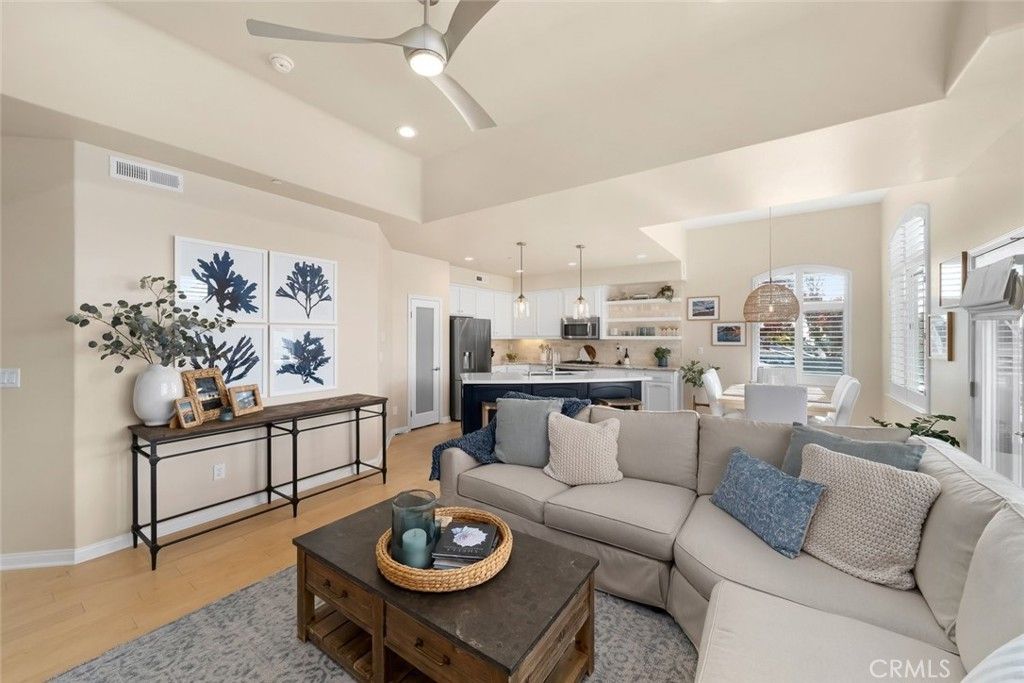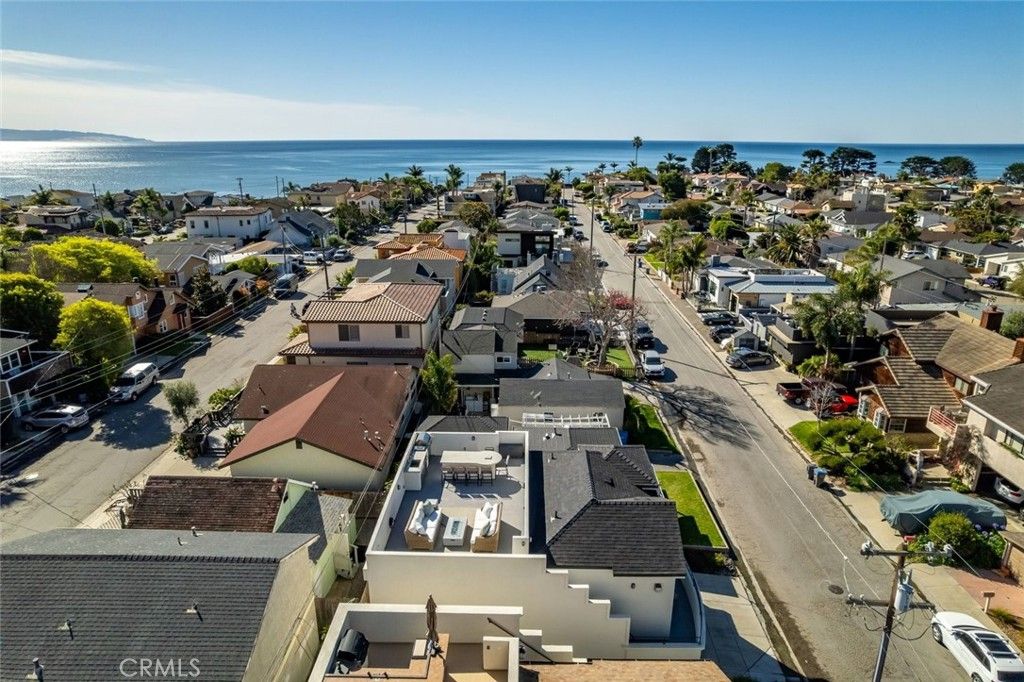 Welcome to coastal living in the heart of Shell Beach. This beautifully maintained 3 bedroom, 3.5 bath home offers a light-filled, flexible floor plan and exceptional indoor-outdoor spaces just moments from the ocean. The main level features an inviting covered entry, warm wood flooring, and a spacious bedroom with adjacent full bath"”ideal for guests or single-level living. A second downstairs bedroom with closet is currently used as a home office, offering versatile space for guests, work, or hobbies. You'll also find a convenient interior laundry room and access to a private side yard with outdoor shower, perfect after beach days. Upstairs, the bright open-concept living area showcases vaulted ceilings, plantation shutters, and a cozy fireplace with stone surround. The updated coastal kitchen is the heart of the home, featuring white cabinetry, stone countertops, tile backsplash, stainless appliances, gas cooktop, and a large island with seating. An adjacent dining area filled with natural light opens to a front balcony for morning coffee and ocean air. A convenient upstairs powder room serves the main living and entertaining areas. The spacious primary suite offers room for a sitting area and includes a spa-like bath with dual vanities, stone counters, walk-in tiled shower, and separate water closet. An additional upstairs bedroom features its own en suite bathroom and access to a private covered balcony, creating a comfortable retreat for guests or family. Multiple outdoor living spaces set this home apart. Exterior stairs lead to a spectacular rooftop deck designed for entertaining, complete with a built-in outdoor kitchen featuring a grill, stove top, refrigerator, sink, bar seating, and storage, along with lounge and fire-pit areas. Take in ocean views stretching from Avila Bay to Pismo, along with palm-lined neighborhood views, rolling hillside vistas, and stunning sunsets. Additional features include an indoor fire sprinkler system, a one-car garage equipped with a hard-wired electric vehicle charger, smart home thermostat, and a driveway that accommodates up to three additional vehicles. Boasting beautiful coastal curb appeal and low-maintenance landscaping, this home is ideally situated in a prime Shell Beach location just steps from beach access, shops, dining, parks, and coastal trails. This is truly Central Coast indoor-outdoor living at its finest!