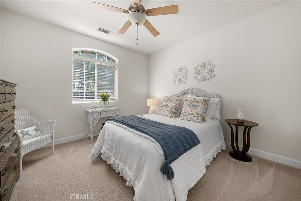 An exceptionally positioned townhome, defined by dramatic cathedral ceilings and soaring windows that capture uninterrupted views of the magnificent, tree-lined edge of the Monarch Butterfly Preserve. Few homes enjoy a setting this immersive"”where the preserve's natural beauty becomes a living backdrop felt throughout the interior and enhances the sense of privacy at every turn. The main level features an open layout with a living room anchored by a cozy fireplace, newer laminate wood flooring, and plantation shutters. The space flows seamlessly into the dining area and the well-appointed kitchen, enhanced by a new dishwasher and microwave and offering convenient access to the patio"”an inviting place to relax, dine, and enjoy the serene surroundings. A main-floor bedroom enjoys the same tranquil views and is paired with a spa-like remodeled bathroom showcasing an elegant walk-in shower and dual vanity. Upstairs, three additional bedrooms and two full baths provide comfortable accommodations for family, guests, or an office or hobby space. Crisp interior paint, ceiling fans, and thoughtful finishes throughout contribute to the home's move-in-ready appeal. Additional conveniences include a 2 car-garage with a built-in storage closet and a car vacuum system. Located within the Trilogy Monarch Dunes Resort Community, the home sits close to the clubhouse and its exceptional amenities, blending a peaceful, nature-oriented setting with the ease of resort-style living.