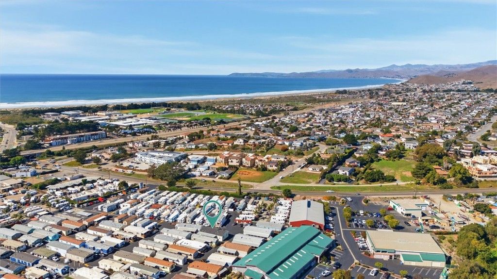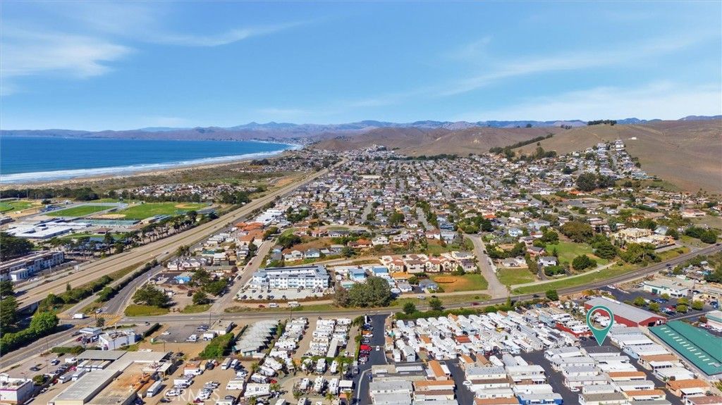 Just half a mile from the sand, 500 Atascadero Road Space F1 offers a modern coastal retreat in Morro Bay's active 55 plus Silver City Resort East, ideal as a primary residence or stylish second home near the beach. Built in 2021, this spacious double wide home provides approximately 1,500 square feet with three bedrooms and two full bathrooms, blending contemporary design with low maintenance coastal living in one of the closest 55 plus communities to the ocean. The open layout features high ceilings, abundant natural light, skylights, and flexible nooks suited for reading, hobbies, or a home office. The chef's kitchen anchors the home with Whirlpool appliances, French door refrigerator, oversized pan cabinets, and a center island bench designed for gathering and conversation. French doors from the dining area open to a covered patio and fenced backyard, creating a private setting for gardening, pets, or relaxed evenings outdoors. A separate laundry room adds convenience, and included in the sale are the washer and dryer, refrigerator, island bench, primary bed with iron headboard, two white nightstands, and a large storage shed. The driveway accommodates two vehicles plus a golf cart. Silver City Resort East features an active clubhouse, community events, neighborhood park gatherings, and a welcoming social atmosphere. Enjoy close proximity to Morro Rock, the Embarcadero, local seafood restaurants, kayaking, hiking trails, and everyday conveniences. Located on leased land with a monthly space rent of $999 plus metered utilities, park approval is required. Primary resident must be 55 or older with a co resident permitted at 45 plus. This move in ready home delivers space, modern comfort, and beach close living in one of Morro Bay's most vibrant coastal communities.