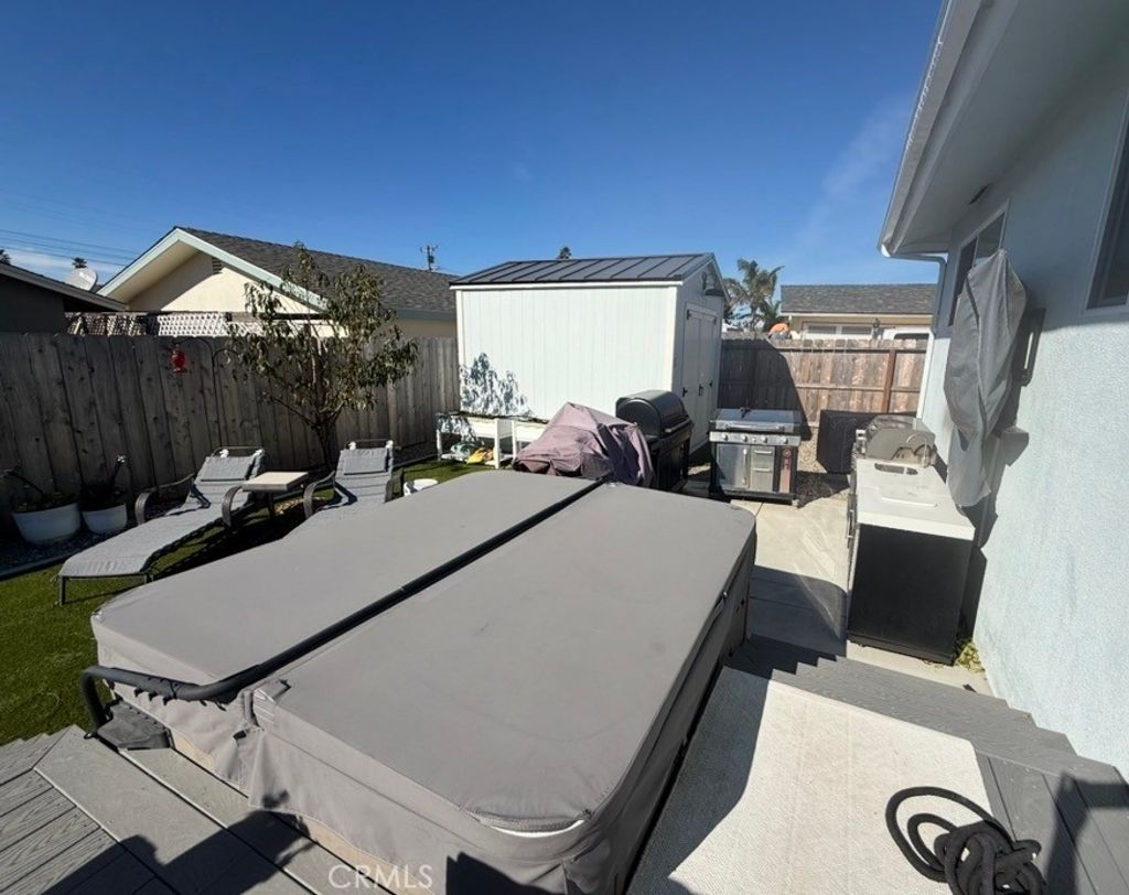 Welcome to 485 Bonita Street, Morro Bay Feel right at home in this beautiful coastal vibe 4 bedroom 2 bath completely updated Beach house! Single level living on a large corner lot with views of the rock and sounds of the waves. You'll have plenty of space to lounge out on the front flagstone patio and a Trex deck off the primary suite that wraps around a jacuzzi, next to an outdoor kitchen, complete with a sink and frig , not to mention an outdoor 75 inch Tv to watch while you bbq. Easy care yard with artificial turf and automatic watering system for the plants, plus a custom storage shed, garden boxes and an outdoor shower. Finished 2 car garage with attic storage. Call to schedule a showing!