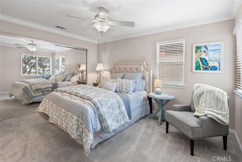 Discover the epitome of coastal elegance in this stunning 2-story home, boasting breathtaking views of Morro Rock and the bay right across the street, conveniently situated opposite a park for endless outdoor enjoyment, and just a short walk to Main Street, Morro Bay where you'll find a variety of restaurants and shops to savor. The main level invites gatherings with two spacious living rooms: a formal living room featuring a grand picture window framing those Bay and Morro Rock vistas, and a cozy family room anchored by a double-sided fireplace that seamlessly warms the adjacent formal dining room, which is enhanced by subtle mood lighting in the ceiling molding. Entertain in style in the gourmet kitchen, showcasing granite countertops, white cabinets, a 5-burner gas cooktop, double ovens, microwave, under-cabinet lighting, recessed lighting, and a convenient center island. A well-appointed half bath downstairs. The laundry room with a sink and window adds practicality downstairs, complemented by a central vacuum system for effortless maintenance throughout the home. Ascend the hardwood stairs to a landing with built-in cabinets, leading to three bedrooms, including a luxurious master suite with a large sitting area, private balcony overlooking the iconic Morro Rock and Bay, and an opulent master bath offering dual vanities, jetted soaking tub, separate shower, private water closet, and expansive walk-in closet. The upstairs also includes two guest bedrooms with a connected bath featuring a tub/shower combo. Outside, enjoy a private, lush backyard and a 2-car garage with cabinets, making this home a perfect blend of comfort, luxury, and prime location.