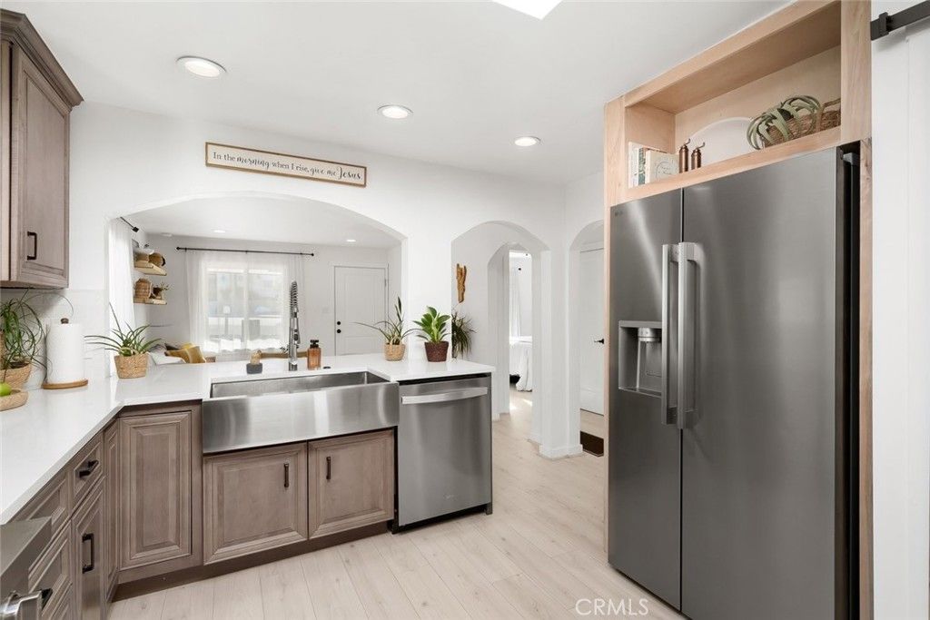 Beautifully updated 3-bedroom, 2-bath home, ideally located just a few blocks from the beach on a spacious R2 lot. Whether you're seeking multi-generational living or an opportunity to offset your mortgage with rental income, this property offers exceptional flexibility. The front of the home welcomes you with a bright, open-concept kitchen designed to impress"”featuring quartz countertops, solid wood cabinetry, a farmhouse-style stainless steel sink, sleek tile backsplash, and a large skylight that fills the space with natural light. Two well-appointed bedrooms and a full bathroom with a solid wood vanity complete this section, with one bedroom offering direct access to a private patio. The back of the home opens up to a stunning flex space with its own private entrance"”perfect as a guest suite, second living area, or oversized primary retreat. This inviting space showcases exposed wood beam ceilings, a cozy tile fireplace, and seamless indoor-outdoor flow to an expansive back deck. The generously sized back bedroom features new French doors and west-facing exposure, capturing ocean breezes and sunset light. An updated kitchenette with stainless steel appliances and subway tile backsplash adds even more convenience. Unwind in the spa-inspired bathroom, complete with a double farmhouse vanity and a walk-in rain shower. Additional highlights include a dedicated laundry room, multiple French doors leading to the backyard, and peek-a-boo ocean and dune views"”with potential for panoramic ocean vistas from a future second story (buyer to verify). Upgrades throughout include Milgard Tuscany windows and doors, luxury vinyl plank flooring, recessed lighting, modern fixtures, and energy-efficient HVAC system with AC mini split for independent climate control of front and back of home. Outside is an entertainer's dream backyard"”featuring a covered dining patio, built-in BBQ area with smoker, warming drawer, and beverage refrigerator, plus a spacious seating area ideal for a fire pit. The lush lawn provides plenty of room for outdoor activities and relaxation. A rare opportunity to enjoy coastal living with built-in flexibility and future potential"”schedule your private showing today!