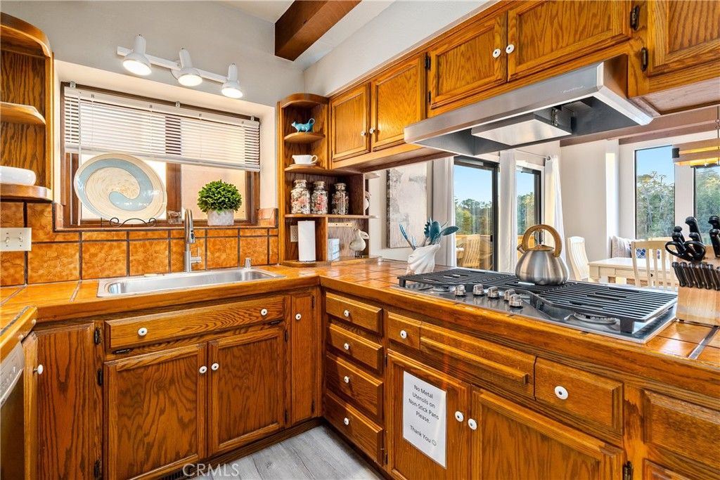 Welcome to this elegant gathering place for family and friends to spread out and fully enjoy the charming coastal village of Cambria. This licensed short-term vacation rential has enough room for all ages to play and relax while being only steps away from restaurants, shopping and wine tasting. Overlooking the rooftops and pine trees to the Pacific Ocean, Santa Rosa Creek and Moonstone Beach and epic sunsets you'll never grow weary of. This 3-bedroom, 3-bathroom home features two fireplaces, three decks, two of which have ocean views, and a shaded patio for play and creativity. From the two-car garage to the functional laundry/mud room, this home is comfortable enough to be a full-time residence with plenty of storage space and room for visitors. The primary bedroom is on the entry level and has its own fireplace, en suite bathroom with an ocean view from your bed, bathtub or your private deck. Downstairs, you enter the living room with another ocean view deck, tall ceilings and a fireplace. The functional kitchen and dining room are just steps up, with stainless steel appliances, colorful tile and a breakfast bar. The 2nd bedroom, hall bathroom, shaded patio and laundry are located on this level as well. The 3rd bedroom and 3rd bathroom are above the garage and have plenty of storage and its own kitchenette. It can also be accessed through the garage or its own entry door for private access. This spectacular property comes completely furnished and it is a LICENSED VACATION RENTAL, which is a rare and hard-to-come-by designation in Cambria.