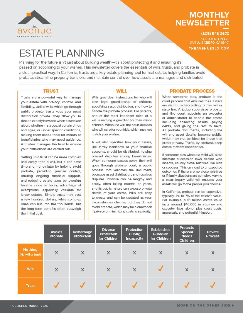 SLO County Market Update & Article on Estate Planning