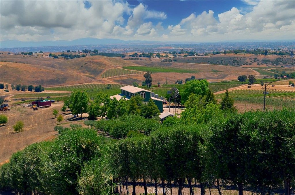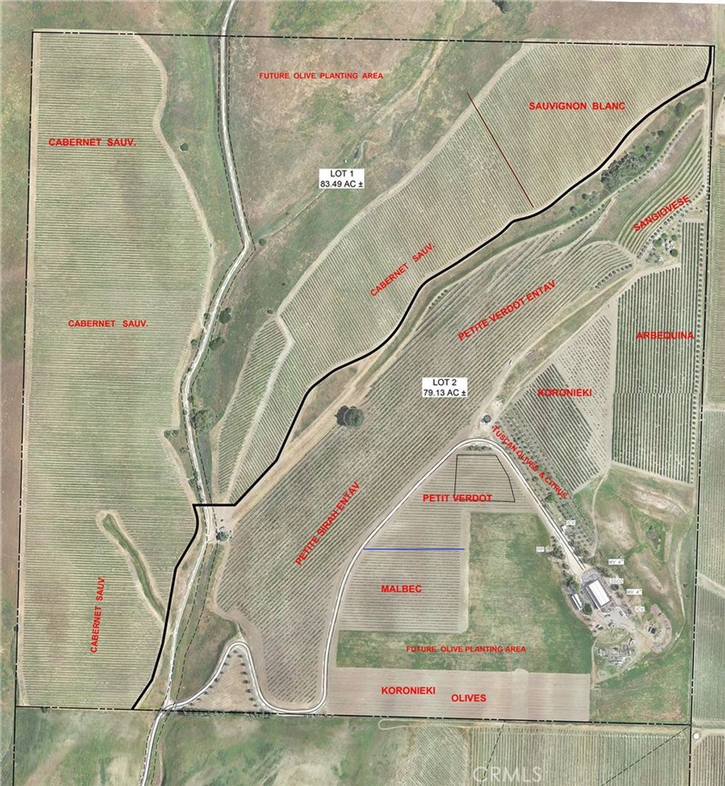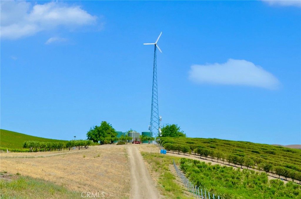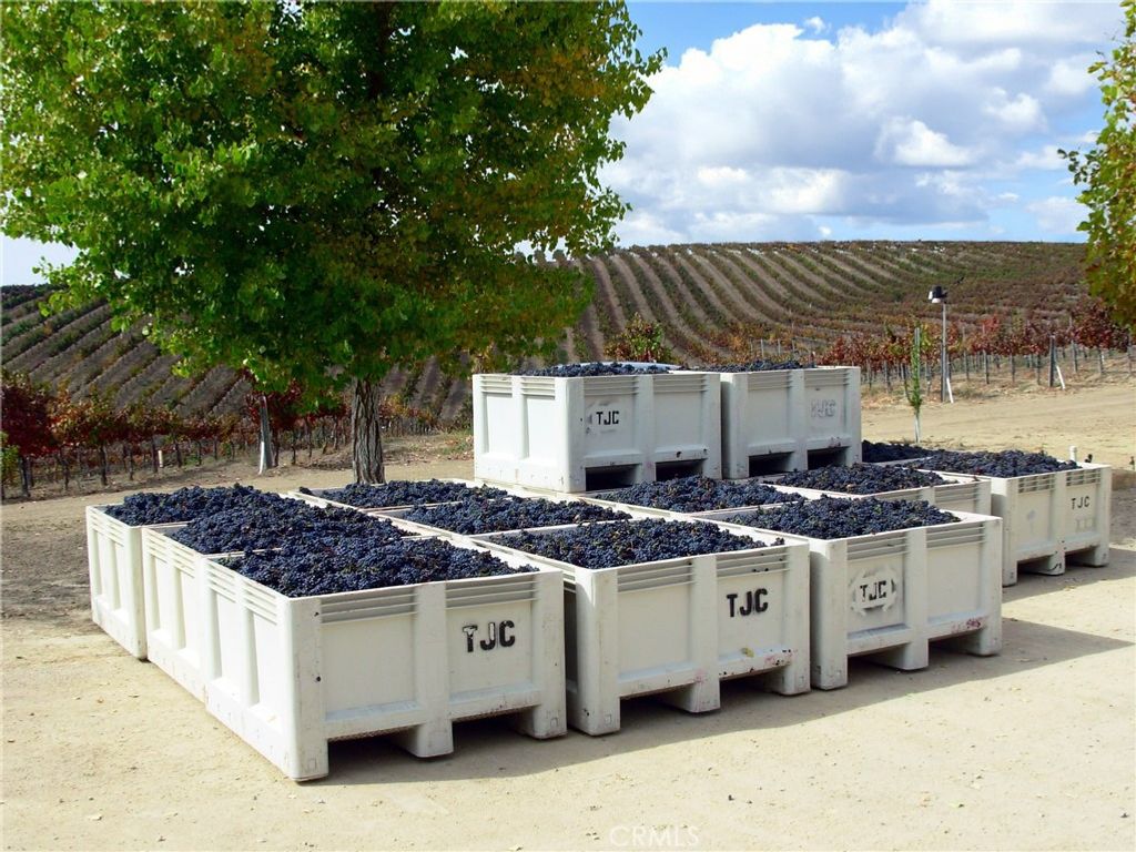 This breathtaking and prestigious 162.61 acre Olive Ranch and Vineyard is located in the rolling hills of the Paso Robles Estrella Appellation. Specializing in the growing and production of award-winning Extra Virgin Olive Oil and premium wine grapes. The property features a beautiful 4950 sq.ft. two story barn. The lower floor of the barn is equipped with a permitted bathroom, shower, water softener, laundry, and septic system. Heavy concrete paving surrounds the entire barn. Just off from the barn is a stunning open concept entertainment center with fountain, water misters for warm days and a beautiful fireplace for cool evenings. The shooting range located on the other side of the barn has a 10X10' concrete shooting stand, aiming out to movable short and long range targets. The property agricultural mainstay of the property is its 87 acres of vineyards (Cabernet Sauvignon, Sauvignon Blanc, Petite Sirah, Malbec, Petite Verdot, Sangiovese) and 15+ acres of Olive trees (Arbequina, Koronieki and Mixed Tuscan). There is a 1 acre lavender field and another 18.8 acres of additional olive tree or vineyard expansion. Five 10,000-gallon water storage tanks co-located in a hill-top tank farm with electronic controls and water level indicators. The Irrigation system is gravity fed from tanks throughout the olive blocks and eastern part of the vineyard. The water is supplied by 2 permitted and vested wells. The wells are 650' deep and produce 70-100GPM with no water table issues. Water quality is excellent and water pressure is 35-50psi throughout. Forever views Gazebo: 16ft. diameter, octagon, Amish style shade gazebo on heavy elevated concrete slab with electric fan and lights and views. The Bergey 10 Kw Wind Turbine Generator mounted on a 100 ft. tall heavy duty, galvanized steel tower structure also supports a wi-fi repeater station that is leased, providing free high power internet and wi-fi service to the property. This stunning property has numerous possibilities for the building of a primary Residence. Truly a special place that makes beauty, prestige and profitability a reality.