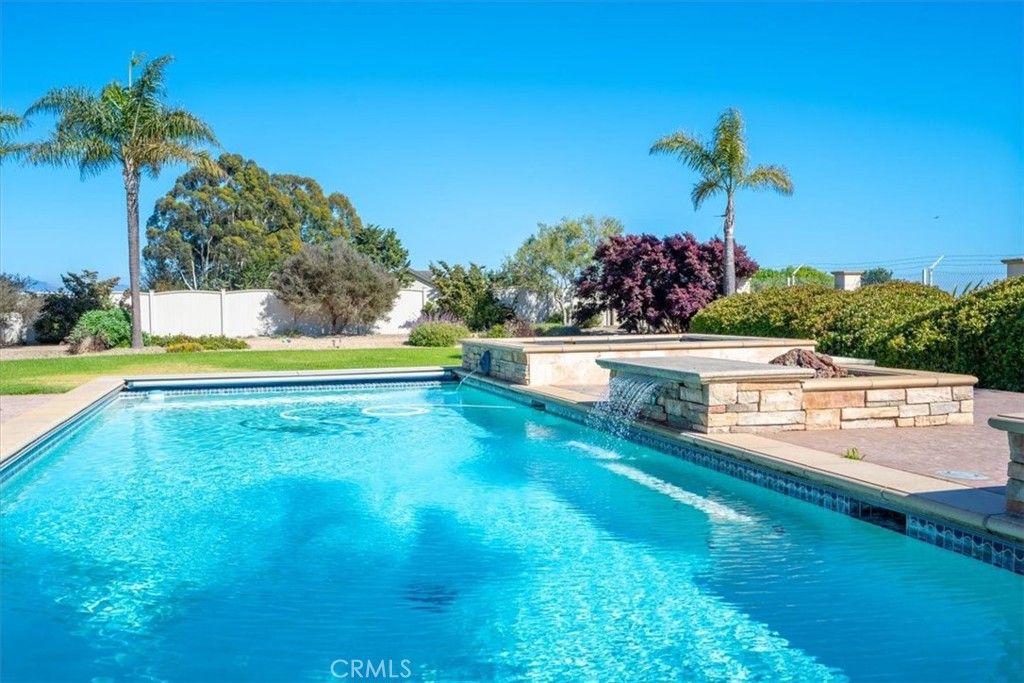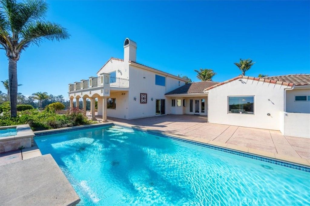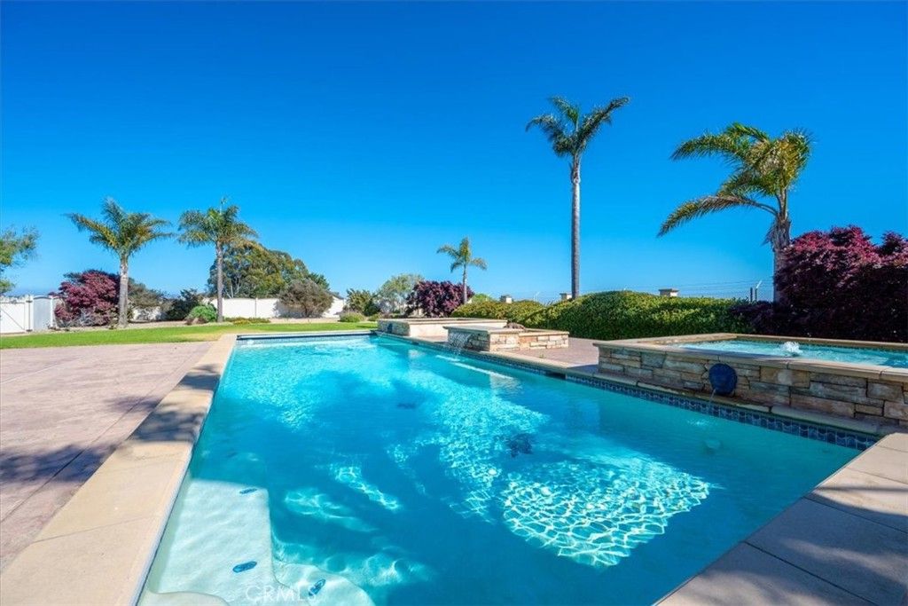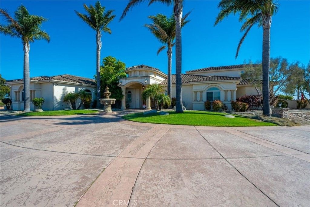 Perched atop 4.8 private acres in one of San Luis Obispo county's most picturesque settings, this sophisticated residence offers a rare blend of privacy, luxury, and panoramic views just minutes from world-class wineries and premier golf destinations. Designed with both elegance and comfort in mind, the main living area features soaring ceilings, marble floors, expansive windows, and seamless indoor-outdoor living that highlights the natural beauty surrounding the property. A chef's kitchen with premium appliances opens to both living and dining spaces, ideal for both intimate gatherings and grand-scale entertaining. Upstairs, a versatile loft area offers the perfect space for a home office, yoga studio or media room-adding dimension and flexibility to the mostly single-level floorplan. The luxurious primary suite is a serene retreat, featuring a spa-inspired bathroom, walk in closets and a private outdoor access. There is also a large game room and two wet bars making it perfect for entertaining. Step outside to a true resort style setting, complete with a gorgeous sparkling pool with fountains, hot tub, multiple lounge areas and beautifully landscaped grounds. With addition space to expand or customize with a vineyard or equestrian facilities. This estate offers endless possibilities. Securely gated and peaceful, while minutes away from Edna Valley, premier golfing and amazing beaches. This estate also also has fire sprinklers and its own hydrant on site.