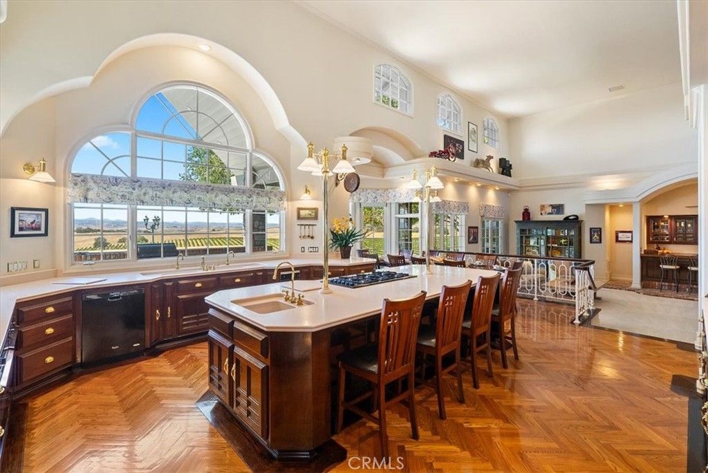 Welcome to a truly one-of-a-kind residence, where vision and craftsmanship come together in perfect harmony. Thoughtfully designed and meticulously built by the seller, this extraordinary estate is as much a masterpiece as it is a home. Located in the desirable Pleasant Valley area, it offers the serenity you're looking for amid expansive neighboring vineyards, wineries, orchards, and grazing land. From the moment you arrive at the gated entrance and wind your way up the tree-lined concrete driveway, you're offered a striking and welcoming introduction to the estate, setting the tone for timeless elegance and privacy. Set on 52± acres with manicured lawns, sweeping 360-degree views, and two large-capacity wells, the property presents an exceptional opportunity to replant a vineyard or establish your preferred crop or orchard. The 6,800± sq. ft. residence is a showcase of thoughtful design and fine detail. At its heart, the living, dining, kitchen, and family rooms feature soaring two-story ceilings and clerestory windows that flood the interiors with natural light while framing expansive countryside views. Entertaining is effortless with a sunken formal living room, an open family room with wet bar, a gourmet island kitchen with walk-in pantry, multiple dining areas, and expansive concrete patios with outdoor BBQ island. Two dramatic fireplaces anchor the main living spaces, while private retreats include five bedrooms, four-and-a-half baths, an office/library/den, and a dedicated laundry and sewing room. The primary suite is both elegant and expansive, offering a fireplace, sitting area, dual walk-in closets, separate vanities, soaking tub, and an impressive walk-in shower. Luxury meets functionality with an attached three-car garage and a remarkable 5,300± sq. ft. detached shop featuring heat and air, mezzanine storage, and ample space for equipment, RVs, or an extensive car collection. A recently completed one-bedroom, one-bath guest suite with full kitchen and living area provides ideal accommodations for extended family or guests. Behind the beauty, the property has been carefully engineered with an elaborate irrigation system, underground water storage, and high-volume wells supporting both residential and agricultural use. A rare combination of vision, time, and uncompromising quality has created this exceptional estate"”offered at a price well below replacement value. This is more than a home; it is a legacy property.