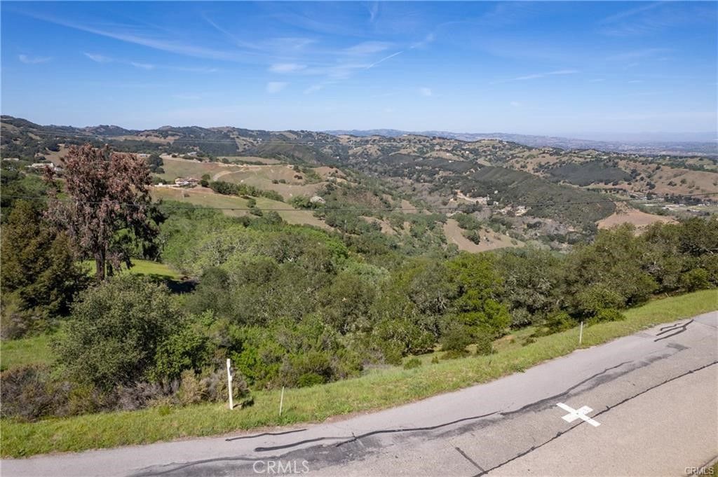 Lovely city and hilltop views from this west side Atascadero parcel. Located mid way between Atascadero and the Central Coast this area offers a micro climate that has cooler summer temperatures with a mild coastal influence year round. This lot has a down slope from the street that allows the opportunity to build your home to take advantage of the fabulous views. Plenty of mature trees make this a truly beautiful parcel. Possible house design renderings in supplements.