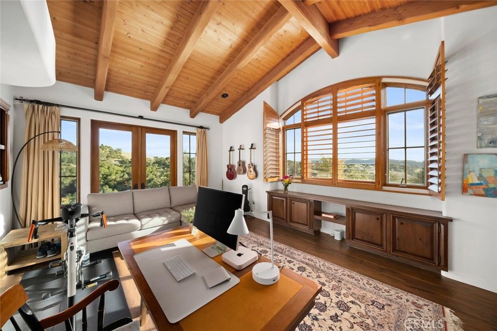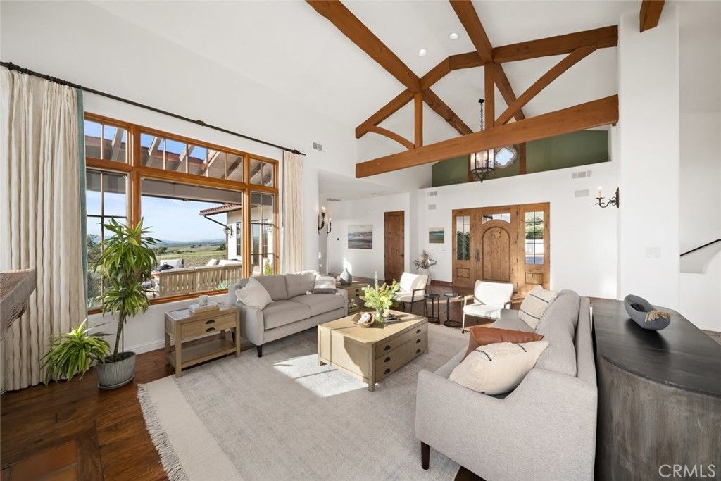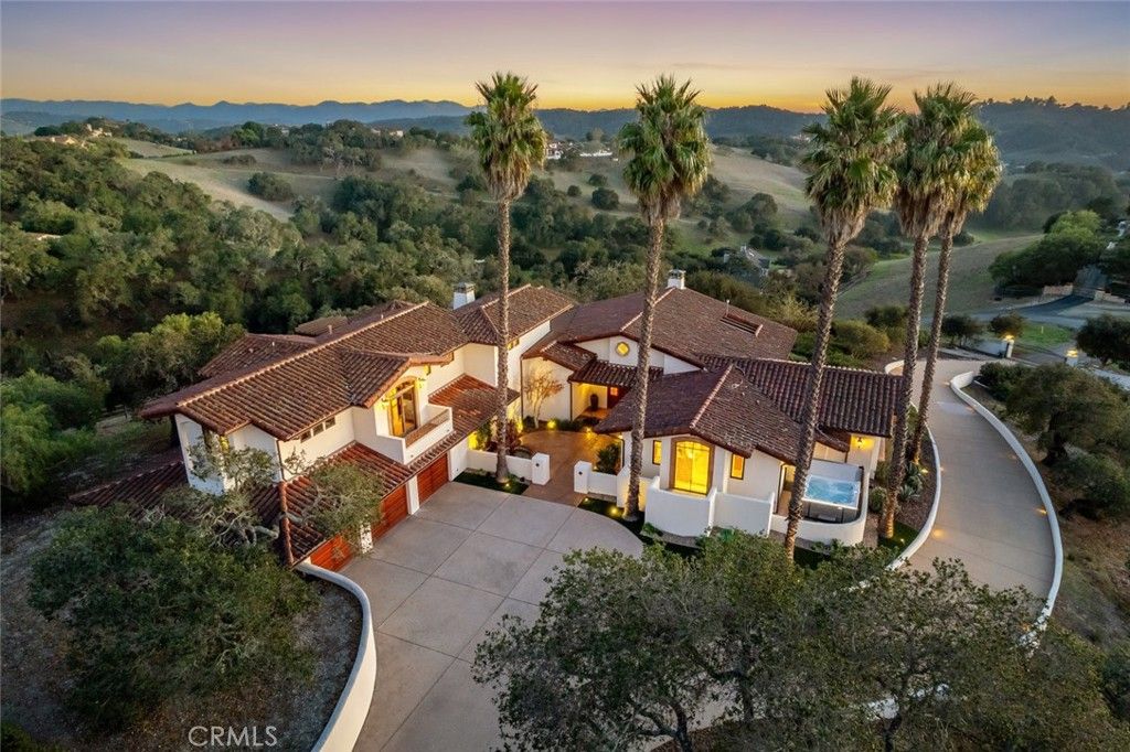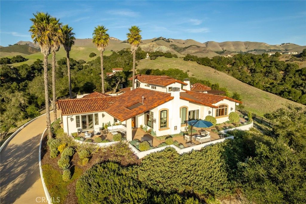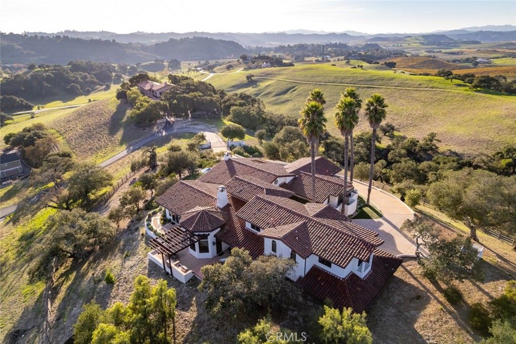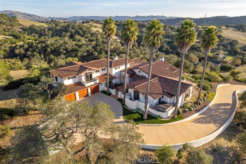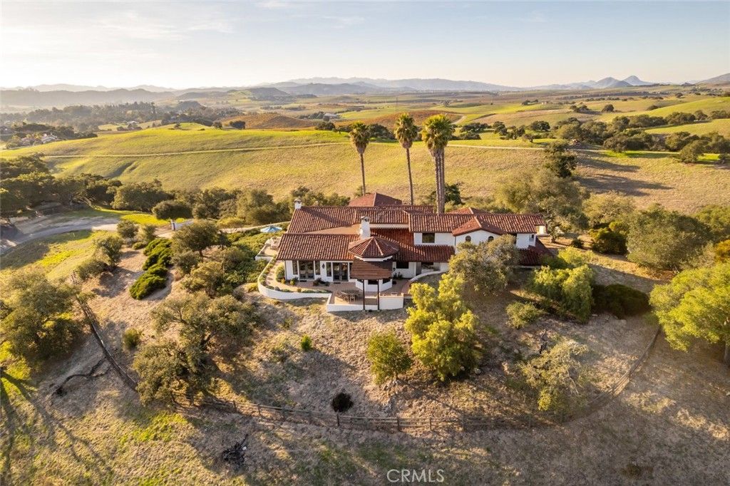 Located in Varian Ranch, one of the Central Coast's most active and prestigious communities, this show-stopping 3 Bed, 5 bath Spanish-style estate offers more than 4,400 square feet of immaculately curated living space. The property features panoramic views of some of the region's tallest peaks set off by unspoiled rolling hillsides dotted with native oaks. Step through this iconic home to reveal a space defined by a striking fireplace which anchors the interior with charm and draws attention to the custom woodwork and high-beamed ceilings throughout the living area. The main floor is flooded with brightness and the natural warmth of the coastal sunlight that seamlessly flows from the family room, to the wet bar, to a gourmet kitchen complete with a generous center island and breakfast nook. Continue onto the expansive terrace to realize a true indoor-outdoor living experience. The primary suite includes a luxurious bath, walk-in closets and a soaring roofline for a resort-like hideaway; there's even a hot tub for stargazing off the master. A private office, 3 oversized bedrooms and 5 bathrooms have been thoughtfully reimagined with new lighting, ceiling fans, carpet, paint and fixtures to give this pastoral dwelling a refreshed look and feel. The gated property features mature landscaping, a built-in barbecue/outdoor kitchen and a 3-car garage. Varian Ranch offers a 40-stall barn, 10 pastures for riding and a riding arena. The 3,100-acre community also features 25 miles of trails, a newly renovated clubhouse, a swimming pool and spa, tennis courts and even a community orchard with citrus and fruit trees. Minutes to beaches, wine country, shopping, dining and nightlife all within the San Luis Coastal Unified school district, this true California oasis is a generational find!