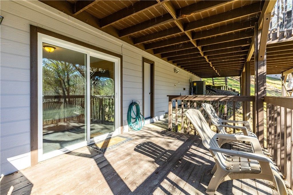 Lakefront Living For Memories! This lakefront home in Lake Nacimiento City is tucked away at the end of a quiet cul-de-sac on a beautifully wooded and private lot, this charming lakefront cabin offers the perfect blend of comfort, character, and recreation. Enjoy peaceful surroundings, sparkling water views, and easy access to the lake with a newer private dock, (due to automatic ownership of Lot 12) and convenient stairs leading directly down to the shoreline. Inside, the home features 3 bedrooms and 2 bathrooms, includes a versatile combo game room/bedroom, plus an added storage room currently used as an extra sleeping space"”ideal for hosting family and friends. Warm wood and carpet flooring enhance the cozy atmosphere, while the freestanding wood-burning fireplace creates a welcoming focal point for relaxing evenings. The kitchen is equipped with newer stainless steel appliances and a breakfast bar, making it perfect for casual dining and entertaining. Outdoor enthusiasts will love the spacious garage with raised beam clearance, designed to accommodate a boat and additional vehicles, along with exterior parking for up to four more vehicles"”plenty of room for guests and lake toys. Hardiboard siding, renovated decks, trimmed trees for fire-safety and views, newer roof, newer wood floors and newer windows, and newer appliances create this move-in ready home. Whether you're looking for a full-time residence, weekend retreat, or vacation rental opportunity, this inviting lakefront cabin delivers privacy, charm, and unforgettable waterfront living. All furnishings & new Private Dock are available for purchase for $50000. Contact agent for additional info.