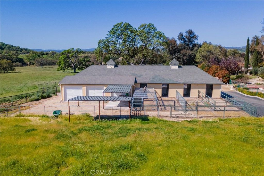 You must see this stunning Country Ranch home with lovely views in each direction in a highly desirable neighborhood. This distinctive Spanish Camp beauty on almost 5 acres is located just outside the city limits of Paso Robles. Nestled in the heart of this prized community you will find more of what your heart seeks than almost anywhere. The 4 bedroom plus office home of 3930 square feet has a primary bedroom and office downstairs plus 3 bedrooms upstairs one of which is en suite. From the marble tiled entry with sweeping staircase to mahogany cabinetry and woodwork throughout this classic home to the Vermont slate floors and native rock wall fireplace, you will be delighted with the attention to detail in this 1988 built home. This horse ready property will delight any equestrian with it's 4 stall barn, tack room, and storage garage for an 4 additional vehicles. Steel pipe fencing surrounds the acreage and is used as cross fencing for the pastures. It also encompasses a riding arena of approximately 230' X 100' with a raised viewing stand. This arena would please any ranch or dressage rider. Or perhaps you need a private soccer field? And for those who love a summertime party, the covered patio which overlooks the 75' X 17' lap pool is ready for fun and exercise. The land includes an olive orchard of over 30 trees as well as an organic pomegranate orchard with over 50 bushes. There are raised garden beds, fruit trees and grape vines planted throughout this lovely property. An owned solar system and on demand hot water unit help with utility costs. This property is designed to be lived in, lived on and loved for all it has to offer. So much to see and experience. Homes of this quality rarely hit the market. Now is your chance to buy a property that is ready and waiting to answer your dreams. Call us now to view this dream come true.