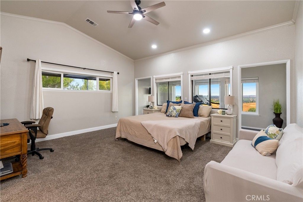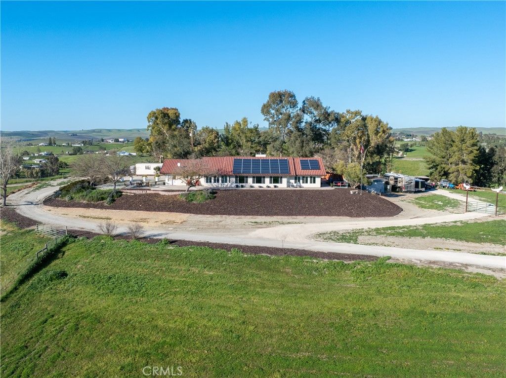Welcome to 2245 Rancho Lomas Way, a picturesque ranch retreat nestled in the heart of Paso Robles' Independence Ranch community. This expansive 2,260+/- single-level home, set on 10+/- acres, is a sanctuary for those seeking a blend of rustic charm and modern convenience. As you step through the front door, you are greeted by a spacious living room, boasting a wood-burning stove set against a brick accent wall, cathedral ceilings, and stunning views of the wine country landscape. Natural light floods the space, highlighting the thoughtful upgrades and meticulous attention to detail. Adjoining the living room is a dining area seamlessly connected to the remodeled kitchen. Here, culinary dreams come alive with updated cabinets, granite countertops, vinyl plank flooring, and a chic backsplash, all complemented by recessed lighting. The kitchen is a true heart of the home, designed for both intimate family dinners and grander gatherings as the French door opens to the rear yard where just around the corner, an artificial turf patio with a jacuzzi tub invites relaxation and social evenings under the stars. The primary suite is a haven within the home, featuring cathedral ceilings and an attached bonus room"”ideal for an office or fitness room"”offering inspiring views of the sprawling hills. The primary en-suite bathroom is equally impressive with a tiled step-in shower, a large closet with built-in vanity, and ample cabinetry. The home also includes 2 additional bedrooms, each with vinyl plank flooring and unique touches such as a bonus playroom or study area in the 2nd bedroom, and a Jack and Jill bathroom attached to the 3rd bedroom. The 2-car garage has been converted to a game room (video games are to be included) boasting a full kitchen and separate entrance. The property's exterior is just as meticulously designed, featuring a carport adjacent to a brick patio set amongst refreshed landscaping with recently added fencing for privacy. Equestrian enthusiasts will be drawn to the graded area with single stalls, various fenced spaces, and water connections, offering a variety possibilities to customize and create an equine environment. Owned solar panels and numerous outbuildings, including a Seatrain, provide functionality and opportunity, making this home not just a residence but a lifestyle choice. Embrace the opportunity to own a piece of Paso Robles serene landscapes, where many sunsets may bring peace and a glimpse of the endless potential!