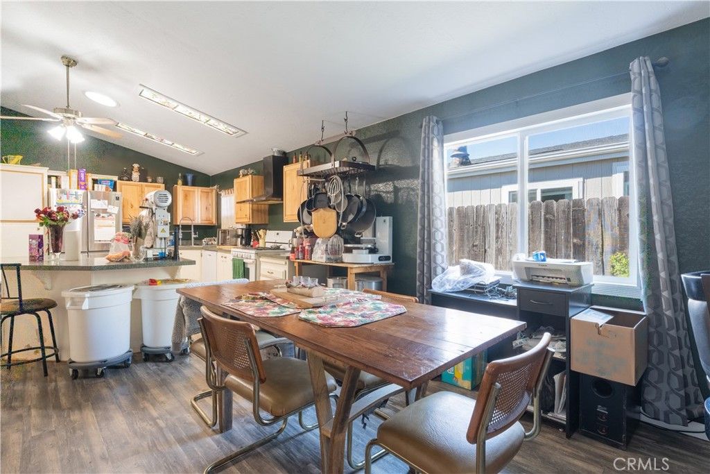 Welcome to 2599 Bridle Trail "” your Heritage Ranch retreat near Lake Nacimiento. This beautifully maintained 1,344 sq ft home offers comfort, privacy, and thoughtful upgrades in one of the area's most desirable lake communities. Luxury vinyl flooring runs through the main living areas with plush carpet in the bedrooms. Both bedrooms feature their own en suite bathrooms with tile flooring, newer vanities, and updated lighting. Decorative door and window trim adds character throughout the home. The spacious kitchen includes updated upper cabinets and a large center island perfect for gathering and entertaining. The inviting living room features a charming shiplap accent wall that adds warmth and style. A brand new roof with a solar attic fan has just been installed, providing long-term value and improved energy efficiency. The upgraded HVAC system includes a UVC light and air scrubber to enhance indoor air quality. Dual-paned Pella windows in the living and dining rooms help maintain comfort year-round, while a pellet stove in the dining area adds cozy charm. The garage features a newer door with backup battery opener, and solar power is provided through a leased Tesla system. The backyard backs to open space for added privacy and features two covered patios with a private hot tub tucked beneath one patio. The side yard features a large covered storage area to keep your additional property protected from the elements. The attached garage also includes a hobby-room-sized man cave with its own swamp cooler, ideal for projects or hobbies. Located in the gated community of Heritage Ranch at Lake Nacimiento, residents enjoy access to a private marina with boat launch, swimming pools, tennis and pickleball courts, parks, trails, equestrian facilities, dog park, campground, recreation barn, and convenient local amenities including Oak Hill Market and restaurants.