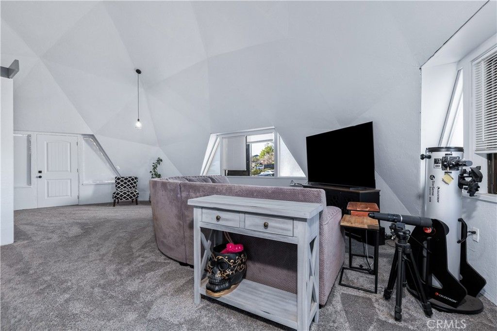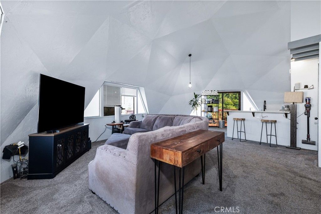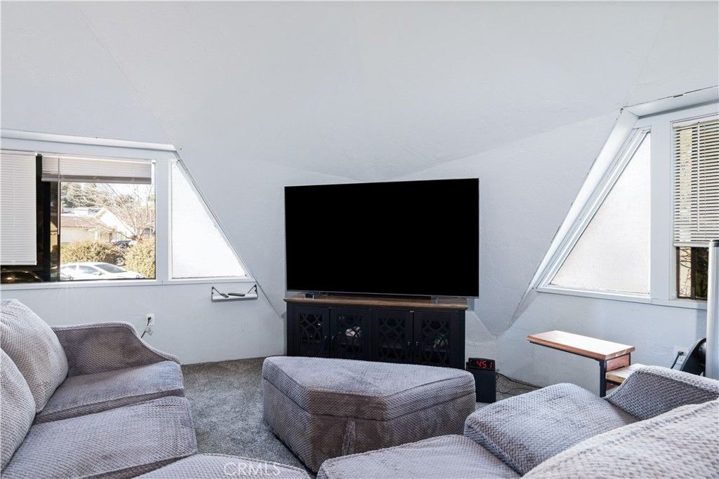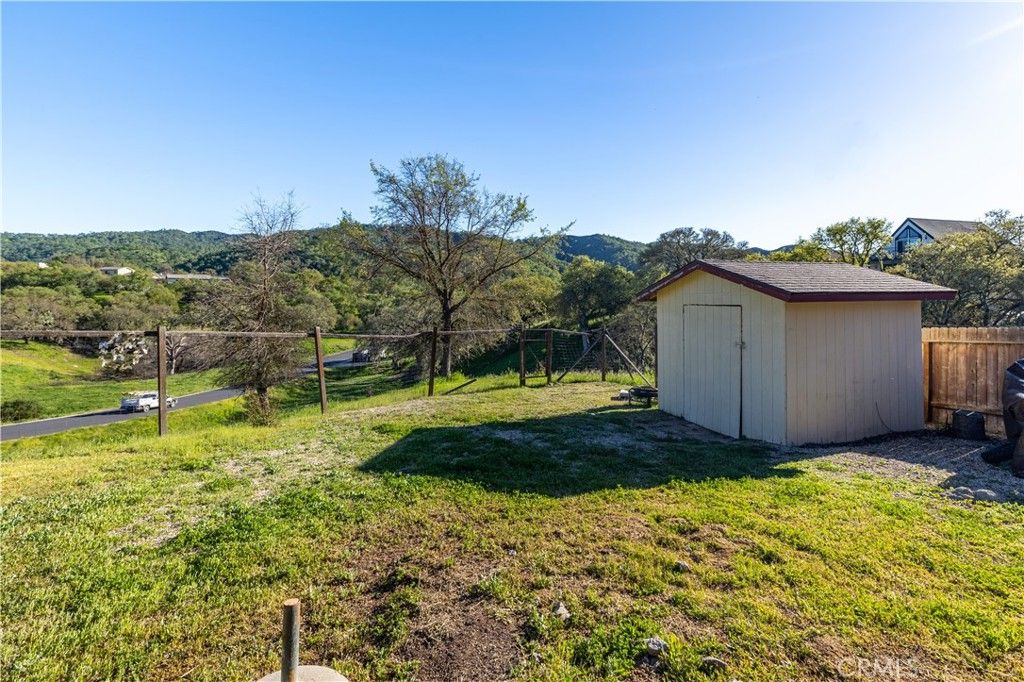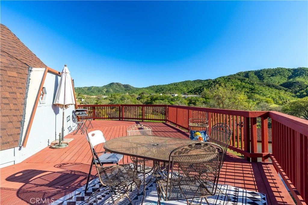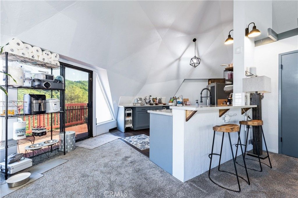 Welcome to this one-of-a-kind geodesic dome home tucked away at the end of a quiet cul-de-sac in Heritage Ranch, backing to a greenbelt with beautiful tree-covered mountain views. This unique property offers privacy, character, and a setting that feels connected to nature. The remodeled kitchen features quartz countertops, a single-basin sink, subway tile backsplash, open shelving, vinyl plank flooring, and a clean, modern design perfect for lake or everyday living. Downstairs you'll find three bedrooms and two bathrooms, offering comfortable accommodations and functional living space. Upstairs, the main living area includes a convenient half bath and opens to expansive decking, ideal for entertaining, relaxing, and enjoying the surrounding scenery. Additional features include a spacious carport, approx 1 yr old water heater, and carpet replaced in 2022. With its distinctive architecture, scenic location, and breathtaking views, this geodesic dome home offers a rare opportunity to own something truly special just outside of Paso Robles with all of the amenities Heritage Ranch at Lake Nacimiento has to offer.