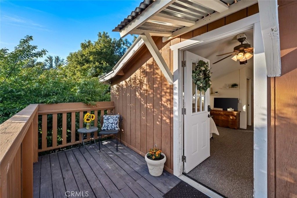 Set on 10 scenic, usable acres just outside of Santa Margarita, this storybook country homestead offers a rare blend of charm, functionality, and flexibility. Tucked into a peaceful setting with rolling hill views and open skies, it invites a slower, more intentional pace of living while still within an easy drive to town. Originally designed as a two-bedroom home, the 1,321± sq ft main residence is filled with natural light, with vaulted ceilings and dormer windows brightening the interiors throughout the day. The living room serves as the heart of the home, anchored by a striking wood-burning fireplace with a handcrafted mantle made from a reclaimed beam dating back to an 1853 Pennsylvania barn"”an authentic, one-of-a-kind focal point. The open-concept layout flows into the dining area and kitchen, where a breakfast bar, center island with cooktop and prep sink, wine refrigerator, and updated backsplash create a space that is both functional and inviting. A built-in desk area adds everyday convenience. The primary suite offers a private retreat with a walk-in closet and spacious bathroom featuring a walk-in shower, soaking tub, and dual pedestal sinks. With its own separate entrance, the bathroom also serves as a guest bath. Just outside, a covered deck and fenced courtyard with fresh landscaping create a quiet outdoor escape. Outdoor living surrounds the home, including a wraparound deck, enclosed sunroom with large picture windows, and a covered entertaining space with a soaring ceiling and outdoor fireplace"”ideal for gatherings or taking in sunset views. Above the detached two-car garage, a treehouse-like studio apartment of approximately 515± sq ft offers excellent versatility. With its own entrances and 3/4 bath, it is well suited for guests, extended family, rental income, or a creative workspace. The garage includes an additional room ideal for an office, gym, or workshop, along with ample storage. The land is fully usable and well suited for a true homestead lifestyle"”horses, farm animals, gardens, or simply open space to enjoy. With two wells, water storage, and an ozone water treatment system in place, the property is equipped for country living. Per the seller, there may also be potential to build a second home, adding long-term value. Peaceful, private, and full of character, this Santa Margarita homestead offers a setting that feels like a true escape, yet remains close to everyday conveniences.