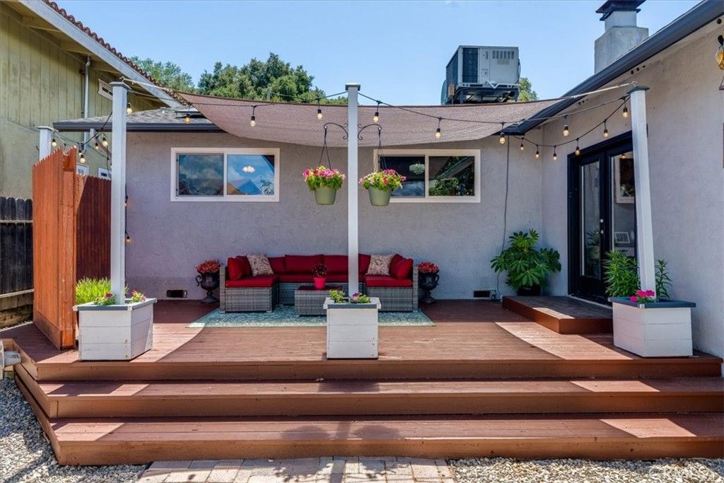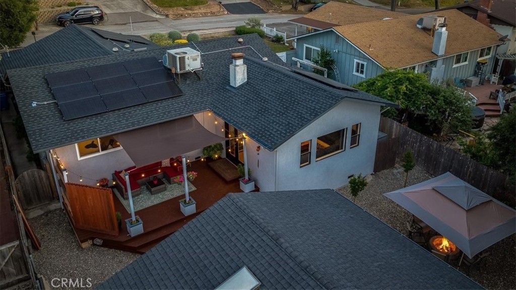 Power, possibility, and peace of mind come together here with energy efficient solar, a brand new 2025 roof, three Tesla wall backup batteries, plus a permitted detached 400 +/- sq ft workshop/studio primed for a future ADU conversion, all complemented by a buyer home warranty provided by the sellers. Incredible opportunity to assume a low-interest FHA loan of approximately $366,000 at 4.125%. Qualified buyers may save significantly compared to current market rates. Subject to lender approval. (If buyer assumes loan then buyer must provide funds to cover the difference between the purchase price and the assumable loan balance, either through cash or secondary financing.) This charming California ranch-style single level 3 bedroom, 2 bathroom home with nearly 1700 sq. ft +/- welcomes you with a flexible layout. Once inside, you enter into a spacious front room that can serve as a formal dining room or living room. Tile and vinyl plank flooring run throughout the home, paired with dual pane windows for comfort and efficiency. The inviting kitchen blends style and function with classic subway tile backsplash, butcher block countertops, and a center island that adds prep space and a natural gathering spot. The kitchen opens to an additional dining area anchored by a cozy electric fireplace and coffee bar. Just beyond the kitchen you are invited into the family room featuring a picture window that fills the space with natural light, while double glass doors lead to the backyard deck for seamless indoor outdoor living and entertaining. Installed Govee exterior lighting enhances curb appeal year round with customizable natural color effects, making seasonal decorating effortless and eliminating the need for annual installation. Additional highlights include a primary ensuite, central heating and air conditioning, ceiling fans, and a finished two car garage. The permitted detached shop, built in 2004, offers exceptional flexibility. With vaulted ceilings, skylights, wall A/C, and dual pane windows, is ideal for a home office, workshop, gym, art studio, or future ADU conversion. Drought tolerant landscaping and easy care outdoor living complete a property that blends charm, versatility, and modern efficiency just minutes from vibrant downtown Atascadero.