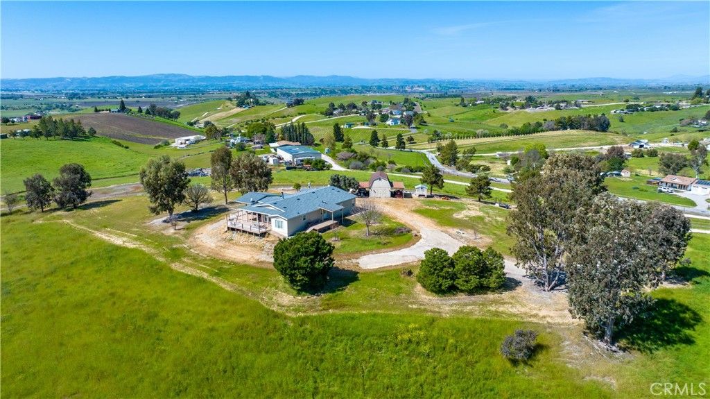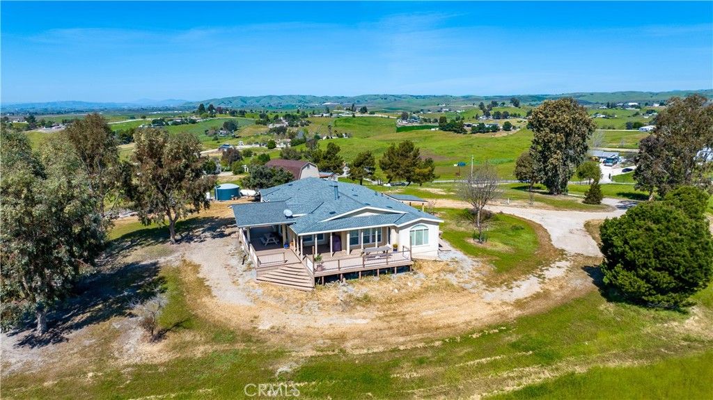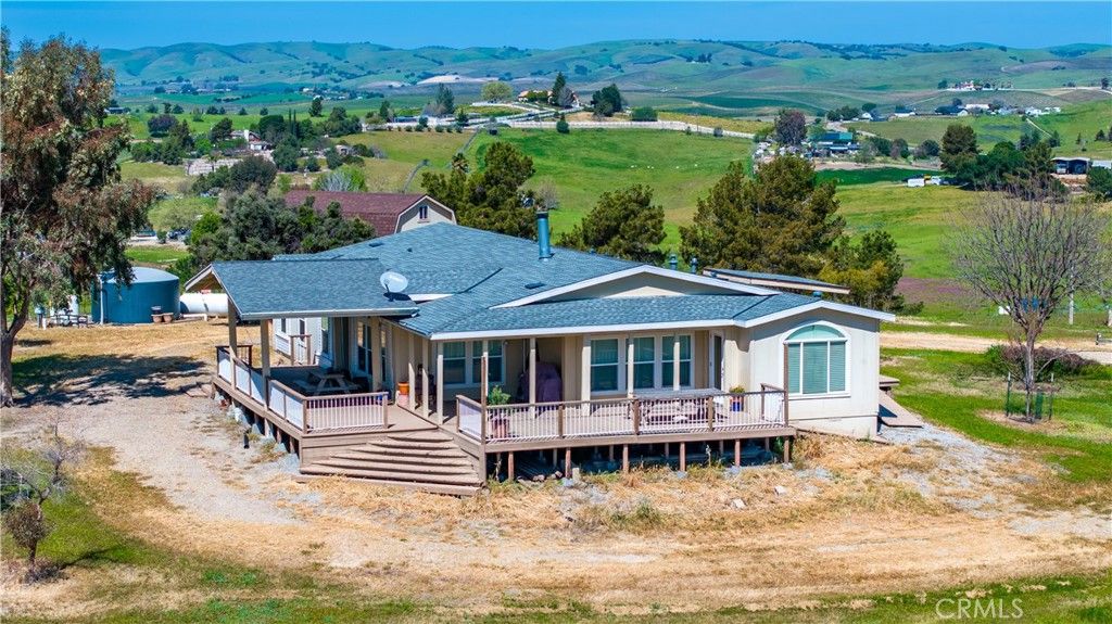Set on a fully fenced 10± acre parcel in the desirable Independence Ranch area, this exceptional property offers what may be the finest 360-degree views in the region"”capturing rolling countryside, vibrant sunrises, and unforgettable sunsets from three separate decks designed for both entertaining and quiet enjoyment. Ideally suited for hobby agriculture and livestock, the land features drip irrigation, ample space for gardening and animals, and a private well supported by a 5,000-gallon water storage tank. Located just a few minutes from approximately 20 wineries along the Pleasant Valley Wine Trail and just 20 minutes from downtown Paso Robles, the setting combines rural tranquility with convenient access to amenities. The 2,432± square foot Palm Harbor home was constructed in 2006 and only used as a weekend retreat (never rented), offers a spacious open floor plan ideal for gatherings, highlighted by a dual-sided wood burning fireplace, large kitchen with island, generous pantry, and dry bar. The home includes four bedrooms, two full bathrooms (each with dual sinks), and one half bath, along with thoughtful features such as six remote-control ceiling fans, a whole house fan, inside laundry, and ramp access to both front and rear decks. Recent improvements include a new roof in 2024, with decks and air conditioning replaced within the past 8-10 years. Additional infrastructure enhances both functionality and self-sufficiency, including a 24' x 16' Toughshed barn with power and an attached side-wings as covered storage areas large enough for boats and tractors, a separate tool shed, and a 30-amp RV service near a water hookup. The property is equipped with a 9,000-watt dual-fuel (gasoline and propane) backup generator connected to a reliable manual transfer switch, a 500-gallon propane tank, as systems designed to support independence should the grid go down. Never rented or occupied full-time, this well-maintained property presents a rare opportunity to enjoy peaceful country living with panoramic views and versatile amenities.