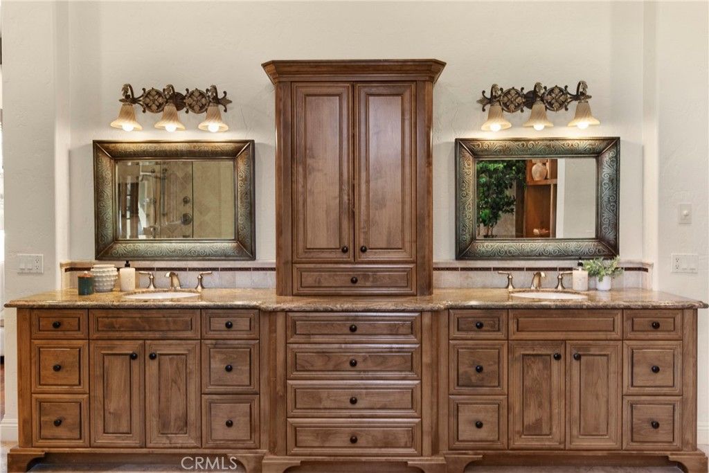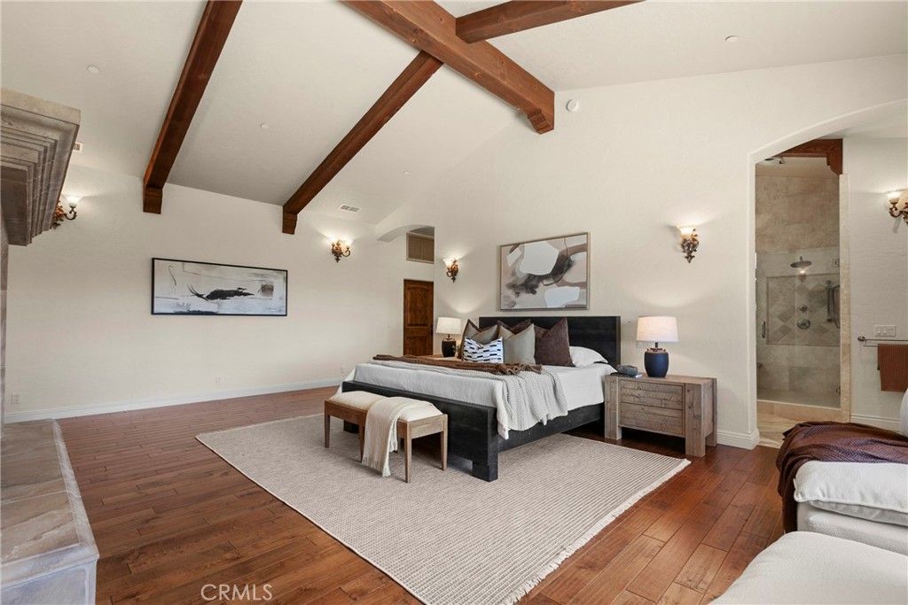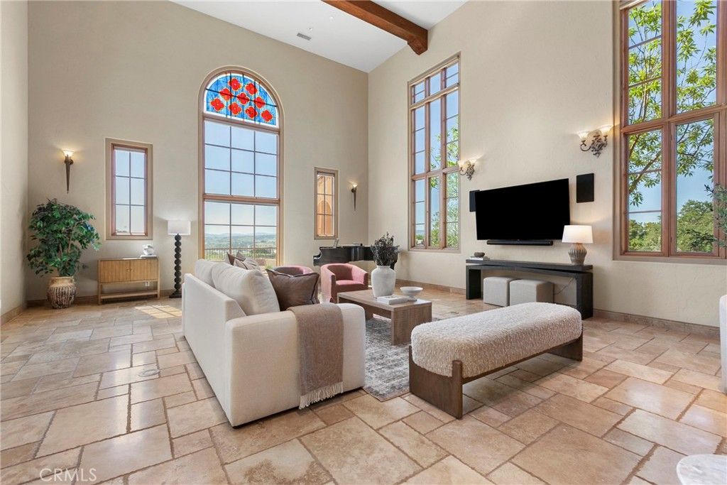 Set behind the gates of Santa Ysabel Ranch Estates, this nearly 5,000± sq. ft. residence embodies timeless Mediterranean-inspired architecture, blending refined craftsmanship with elegant, old-world character. The entry opens to a grand foyer introducing soaring ceilings, graceful archways, and rich architectural detailing throughout. The main living space is truly extraordinary, evoking the feel of a European palazzo. With its expansive proportions, soaring ceilings, and striking architectural details, it offers a sense of volume and elegance rarely found in residential homes"”perfect for both everyday living and large-scale entertaining. Travertine flooring, exposed wood beams, and a statement fireplace, while a dramatic arched window frames picturesque views and some of the most amazing sunsets. The floor plan flows effortlessly from the living area to a formal dining room with a built-in bar, and into a well-appointed chef's kitchen. The kitchen features premium appliances, including a 6-burner Viking range with pot filler, Sub-Zero refrigeration, a warming drawer, and custom cabinetry complemented by granite countertops and a generous center island with prep sink. The main level also includes a private office, powder room, laundry room, and an elegant primary suite retreat. The spacious primary suite offers vaulted ceilings, a fireplace, and tranquil views, along with a spa-inspired bathroom complete with dual vanities, soaking tub, custom walk-in shower, and expansive dual walk-in closets. Upstairs, two well-appointed guest suites provide comfort and privacy, including one featuring a charming Romeo and Juliet balcony overlooking the front grounds. Outdoor living features a solar-heated pool, custom water feature, and a detached casita with private entrance and en-suite bath"”ideal for guests or extended stays. The grounds are thoughtfully designed with a textured concrete patio, ambient lighting, raised garden beds, and mature landscaping that complements the home's Mediterranean aesthetic. Additional features include four HVAC systems, a three-car garage with upgraded flooring, and abundant storage, along with an additional storage room/workshop adjacent to the garage. Residents of Santa Ysabel Ranch Estates enjoy the benefits of one of the area's most exclusive communities, offering a gated setting with 24/7 security, scenic walking trails, tennis courts, and a serene, private environment just minutes from town.