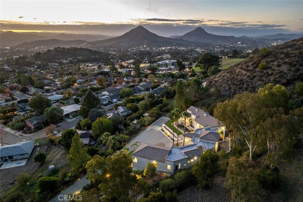 Panoramic 180° views over San Luis Obispo and the surrounding hills define this privately gated five-acre estate in the Sinsheimer foothills. Elevated above the city yet minutes from downtown, the view alone slows your pace and invites you to take it all in. Inside, over 5,000 square feet of light-filled living space was designed to frame the landscape at every opportunity. Cathedral ceilings, a rebuilt grand entry staircase, and expansive windows create architectural presence, while nearly every room opens directly to terraces, poolside spaces, or fresh air. Five en-suite bedrooms each offer outdoor access. The primary suite includes a dual-sided fireplace, walk-in closet, private study, and additional flex room. Multiple living areas and three fireplaces provide both gathering space and separation. A guest suite with full kitchen and an elevator from the three-car garage add everyday convenience. Fresh interior and exterior paint, refinished hardwood floors, new carpet, owned solar, RV hookups, A/C-ready infrastructure, and clean well and septic reports complete the offering. The southwest-facing pool and spa capture golden hour beautifully "” whether hosting at sunset or unwinding under the city lights. A rare combination of privacy, scale, and proximity. Shown by appointment.