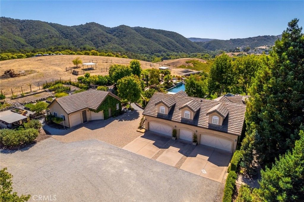 Wind Dance Estate is a rare multigenerational offering set on approximately 40 acres in the heart of Avila Valley, one of the Central Coast's most desirable coastal locations. Properties of this scale, privacy, and versatility are seldom available so close to Avila Beach and downtown San Luis Obispo. Thoughtfully developed over decades, the estate blends architectural depth, water resources, agricultural productivity, and lifestyle flexibility, all framed by sweeping panoramic valley views. The main residence offers approximately 5,500 sq ft of architecturally rich living space with a thoughtful separation of public entertaining areas and private living quarters. Features include a stone wood-burning fireplace, a light-filled glass conservatory for year-round indoor-outdoor living, an open kitchen with distinctive ceiling detail, a richly paneled library, studio, handcrafted cabinetry and counters, cherry wood finishes sourced from a single lot, tall, angled ceilings, a sculptural staircase, and multiple connections to outdoor living areas. Designed for true multigenerational living, the estate includes an attached yet fully independent secondary residence of approximately 3,100 sq ft with 3 bedrooms and 3 baths, plus a downstairs bonus room. This residence features a private entrance, high ceilings, skylights, expansive windows, bedroom lofts, and a private deck with peaceful wildlife and night-sky views. Additional living spaces include a 1-bedroom, 1-bath apartment of approximately 1,100 sq ft above the main residence's five-car garage, and a studio-style apartment of approximately 960 sq ft above the barn, ideal for guests, caretakers, or creative use. The land is both beautiful and productive, featuring established avocado and olive orchards, gardens, and open acreage well suited for farming and livestock raising. Outdoor amenities include a resort-style pool and spa, a tranquil koi pond and waterfall, and curated art installations and sculptural elements throughout the grounds. Rolling hills, eucalyptus groves, redwoods, ocean peek views, a designated wildlife corridor, and a dark-sky environment complete the setting. Water resources include a private well, storage tanks, rainwater catchment feeding a lined pond, neighborhood water rights, and grid-tied solar, supported by a multi-use barn, farm shop, and estate-scale infrastructure.