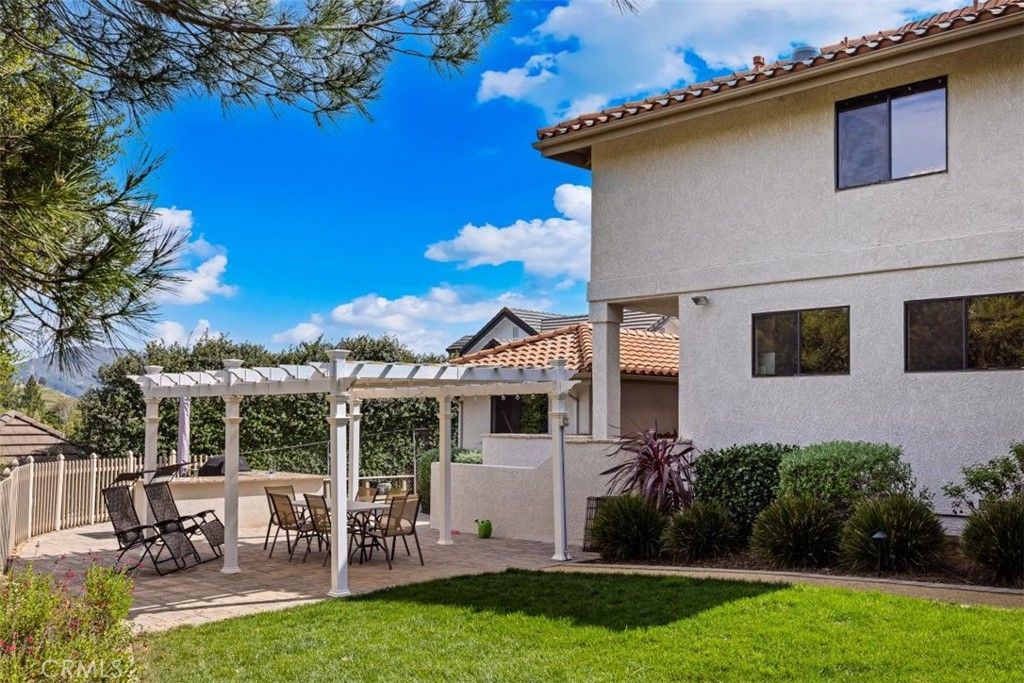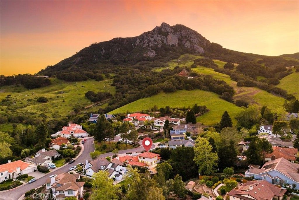 Don't miss the opportunity to live in the highly desirable Ferrini Heights neighborhood of San Luis Obispo. This spacious approximately 3,200-square-foot home offers a versatile split-level layout with impressive views of Bishop Peak, Cerro San Luis, and the Cal Poly/Cuesta Grade. The home features two bedrooms and a full bathroom on the lower level, while the private primary suite upstairs includes a walk-in closet, full bathroom, and sweeping mountain views. On the main level, just off the entry hall, you'll find a convenient half bathroom and a large flexible room that can serve as a parlor, office, bedroom, or family room. The living and dining areas flow naturally toward the kitchen with quartz countertops and a welcoming breakfast nook or reading area. Toward the back of the home are a pantry/storage room, three-quarter bathroom, laundry room, hobby rooms, and direct access to the attached two-car garage. Attractive laminate flooring and tile are found throughout. Comfort is ensured year-round with like-new central heating and air conditioning, along with two gas/wood-burning fireplaces. Central vacuum ports are installed throughout the home. Outside, the front and backyards have been professionally landscaped with automatic sprinklers, drip irrigation, and lighting. The front yard offers inviting sitting areas where you can enjoy sunrise views of Bishop Peak, with the trailhead located just half a block away. The backyard is designed for relaxing and entertaining with two sets of sliding doors opening to the patio and outdoor living areas. A custom-built barbecue station includes a sink, storage, small refrigerator, and large granite countertop. Enjoy meals under the shaded pergola that wipes clean with no need to paint. The lower backyard includes storage sheds and mature fruit-bearing avocado, orange, and lime trees. During the rainy season frogs can be heard in the small creek beyond the fully fenced yard, while birds and squirrels are year-round companions in this peaceful natural setting. Owned solar panels are included. Situated on a .28-acre lot in a quiet, friendly cul-de-sac with a pine-shaded parking area, the home is also close to local elementary schools and Cal Poly.