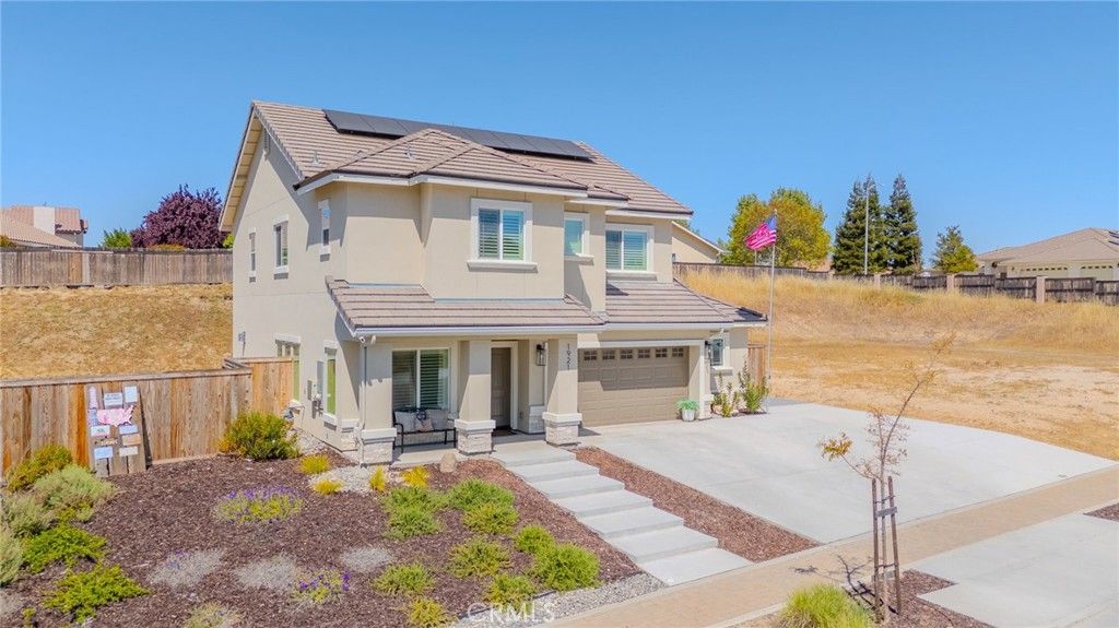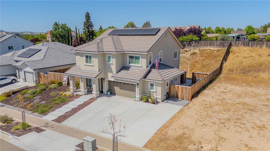 Welcome to 1921 Catahoula in beautiful Paso Robles! A stunning custom-built home completed in 2024, where thoughtful design meets modern comfort and effortless Central Coast living. Situated on a generous 12,400 sq ft lot, this 4-bedroom, 3-bathroom home offers 2,420 sq ft of well-designed living space, perfect for both everyday living and entertaining. The open-concept floor plan is complemented by a separate formal family room and dining area, providing flexibility for gatherings or quiet retreats. The heart of the home is the inviting living room, featuring custom built-in shelving and a cozy gas fireplace. The chef's kitchen is a standout, showcasing a large quartz island, abundant counter space, and a spacious pantry designed for convenience and style. Upstairs, all bedrooms are thoughtfully positioned for privacy. The expansive primary suite offers a true retreat with a large walk-in closet, spa-inspired soaking tub, and a beautifully tiled walk-in shower. Additional highlights include plantation shutters throughout, a whole house fan, and PAID SOLAR for enhanced energy efficiency. The laundry room is equipped with a utility sink for added functionality. Step outside to a backyard designed with intention and still has room for endless potential. Featuring a gorgeous covered patio, added concrete, a dedicated dog run, and enhanced drainage with extra rain gutters. The 2-car garage includes a bonus workshop area, perfect for hobbies, storage, or projects. Located just minutes from renowned wineries and the Paso Robles Golf Club, this home offers not just a place to live, but a lifestyle to enjoy. This is the one you've been waiting for "” schedule your private showing today.