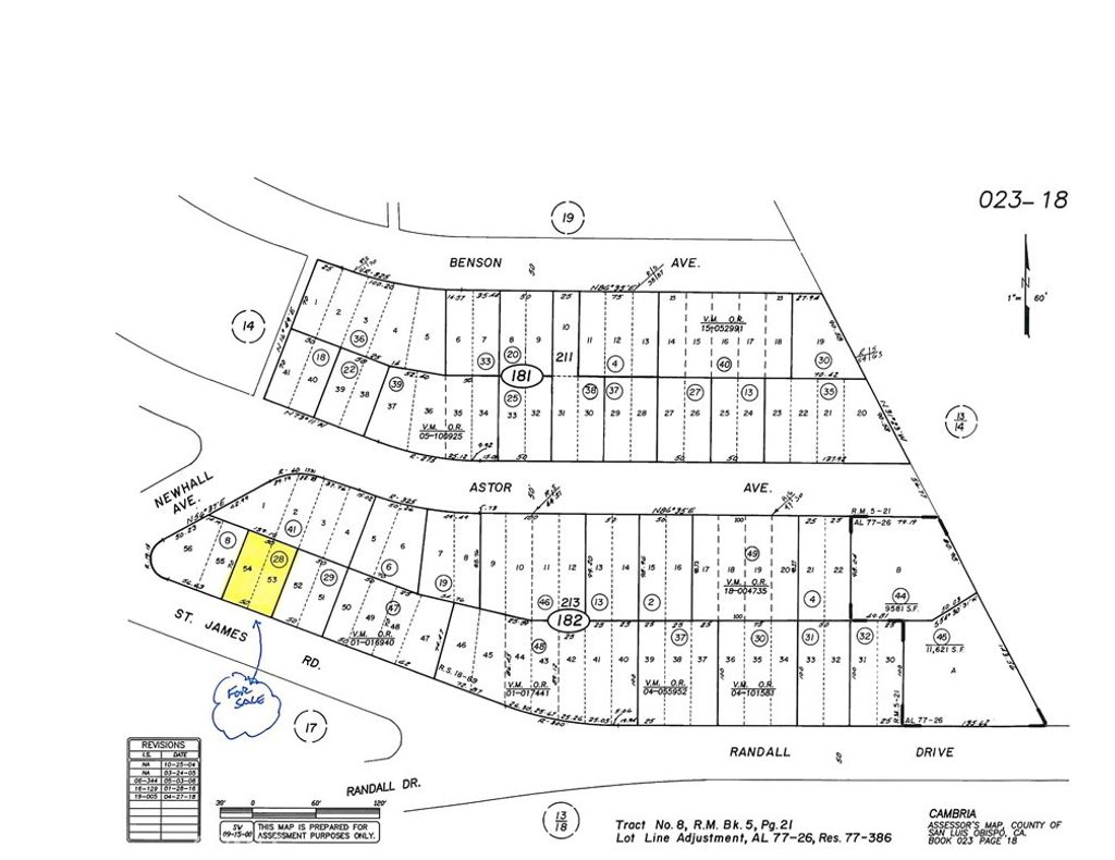 Price Reduced! St James Rd at Newhall Ave, Lodge Hill. Close to Strawberry Canyon and Randall Dr heading down to Marine Terrace and the Ocean. A quiet forest location with possible Ocean Views from a future 2 story home. Transfer a water position or a water meter to these lots. Buy and Hold for now until the current building moratorium for new construction is lifted. Check CCSD and county websites (cambriacsd.org & slocounty.ca.gov) for info on the moratorium & allowable uses. Cash or Owner May Carry. Price Reduced! Now Offered for $39,000.