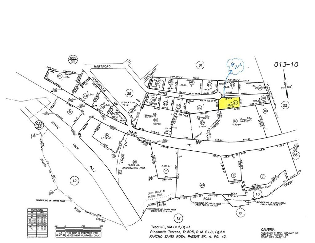 Pine Knolls Estates +-2/3 acre at the end of Grove Street with #218 on CCSD Water Wait List! Overlooks West Village to the Ocean and the Fiscalini Preserve. Gentle slope, easy access, private sunny area. Paved Street to the edge of the property. Don't miss this Excellent Property! Buy and Hold for now until the current building moratorium for new construction is lifted. Check CCSD and county websites (cambriacsd.org & slocounty.ca.gov) for info on the moratorium & allowable uses for property. Price Reduced! Now $89,900!