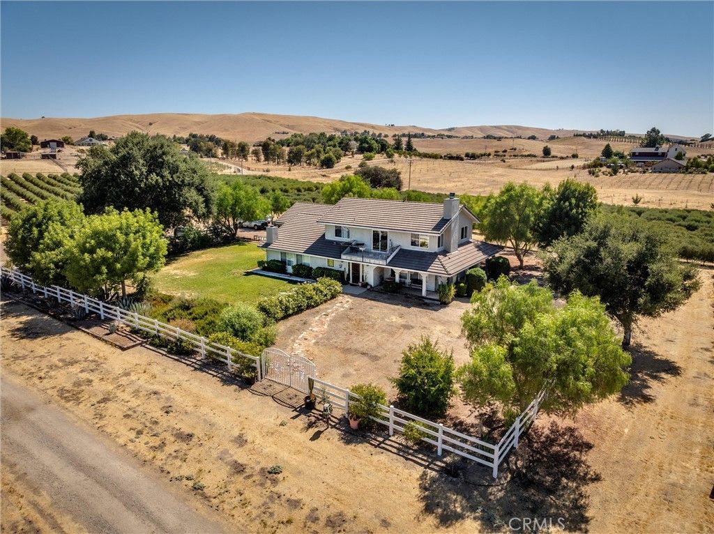 Discover the perfect blend of elegance, privacy, and potential on this exceptional 20-acre estate in Paso Robles. The custom 2,648 sq ft home, built in 2003, features 3 spacious bedrooms and 3 beautifully appointed bathrooms, with timeless Spanish tile and oak wood floors, custom cabinetry and doors, and warm touches like a fireplace in the front room and a wood-burning stove in the family room. The master suite offers dual vanities and a soaking tub with sweeping views of the surrounding landscape. Outside, a manicured front lawn, fruit trees, and vibrant landscaping create a welcoming retreat, while the expansive rear yard is ideal for entertaining and outdoor living. A two-car garage with custom attic storage and a separate restroom adds functionality, complemented by a Tuff shed for tools and supplies. The gently rolling 20-acre parcel offers endless possibilities. Currently home to the award-winning Canto Sol Olive Oil Farm with more than 8,500 thriving olive trees, the land can continue as a productive venture and be reimagined for new uses. The rich Paso Robles terrain and premier reputation for agri-tourism make it well-suited for not only boutique olive oil production, but the acreage also provides the opportunity to add amenities such as a tasting room, event space, or other lifestyle-driven enhancements. Whether you envision a continuation of the olive oil legacy or simply a private sanctuary with wide-open views, this estate offers unmatched flexibility. The combination of a thoughtfully designed home, expansive acreage, and an unbeatable Paso Robles location makes this property an extraordinary opportunity to craft your dream lifestyle on the Central Coast.