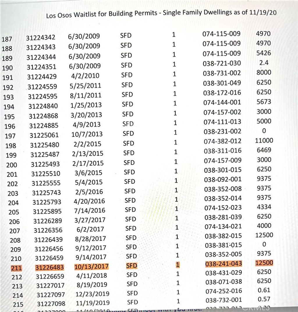 This is an opportunity to purchase a 12,500 sq. ft. unimproved parcel in the bayside community of Los Osos. This is a bulk sale consisting of four adjoining 25' X 125' lots to be sold together, equaling 100' of street frontage. With distant views of the bay, sand dunes, and surrounding hills from street level, it is sure to be a terrific homesite when building is permitted. You'll be a part of a wonderful community offering a coastal lifestyle along with all the amenities this area has to offer. One of the lots is #211 on the Los Osos Waitlist for Building Permits and lot size says 12,500 sq ft. Check with SLO County Dept of Planning & Building to investigate the potential of building on vacant lots in Los Osos. You'll find some great information at https://www.slocounty.ca.gov/departments/planning-building/grid-items/communities-villages/los-osos
