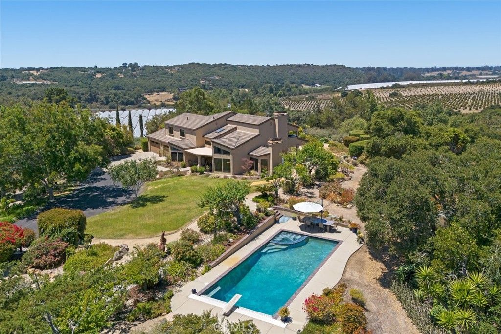 BOLD VIEWS. UNMATCHED QUALITY. YOUR CALIFORNIA DREAM ESTATE AWAITS! Get ready to fall in love with this once-in-a-lifetime custom estate set on 8.66 jaw-dropping acres in the heart of wine country and adjacent to world famous Laetitia Vineyards & Winery. On clear days, you can see all the way to Avila Beach, and when the sun starts to set, prepare yourself"”this home delivers front-row seats to some of the most spectacular sunsets you'll ever witness. This isn't just a home"”it's an experience. Built with superior craftsmanship, designed to embrace bold views from every angle, and upgraded for modern luxury, this property brings a whole new level of excitement to daily living. The layout is open, flowing, and built for entertaining"”starting with a show-stopping chef's kitchen featuring Corian counters, massive prep island with sink, sleek stainless appliances, designer lighting, and custom cabinetry. Enter a dramatic sunken family room where a floor-to-ceiling stone wall with inset windows and fireplace creates the ultimate hangout zone. Need more space? There's a bright and elegant formal dining room that opens to a view-drenched patio, plus a second lounge area with another cozy fireplace. Need flexible space? A main-level bedroom with ensuite (currently used as an office) and oversized 3-car garage deliver the versatility you're looking for. Upstairs, the primary suite is an absolute showstopper"”with a private balcony, spa-inspired bathroom (jetted tub, glass + tile shower, walk-in closet), and epic views that make waking up feel like a dream. Outside, dive into a private in-ground pool and spa, surrounded by lush lawns, concrete patios, and nothing but vineyard-covered hills in every direction. Recent pool upgrades include a new pump, filter, heater, and cover. Bonus perks: Owned solar + Tesla batteries. Two high-producing wells. 40' x 40' steel workshop/storage building with separate access road"”ideal for hobbyists, entrepreneurs, or RV storage. New roof, updated windows, and fresh exterior paint. Fenced veggie garden + multiple outdoor zones for dining, games, and next-level relaxation. This home has it all"”views, privacy, designer finishes, space to grow, and unmatched energy. Whether you're looking to host epic gatherings, dive into vineyard country living, or just wake up to something extraordinary every day... This is your moment. Book your showing. Live the dream.