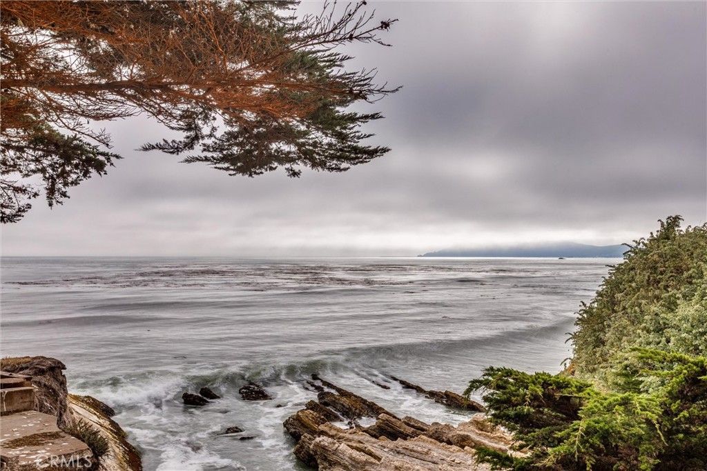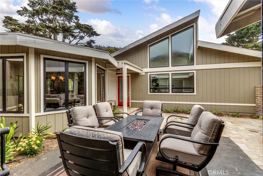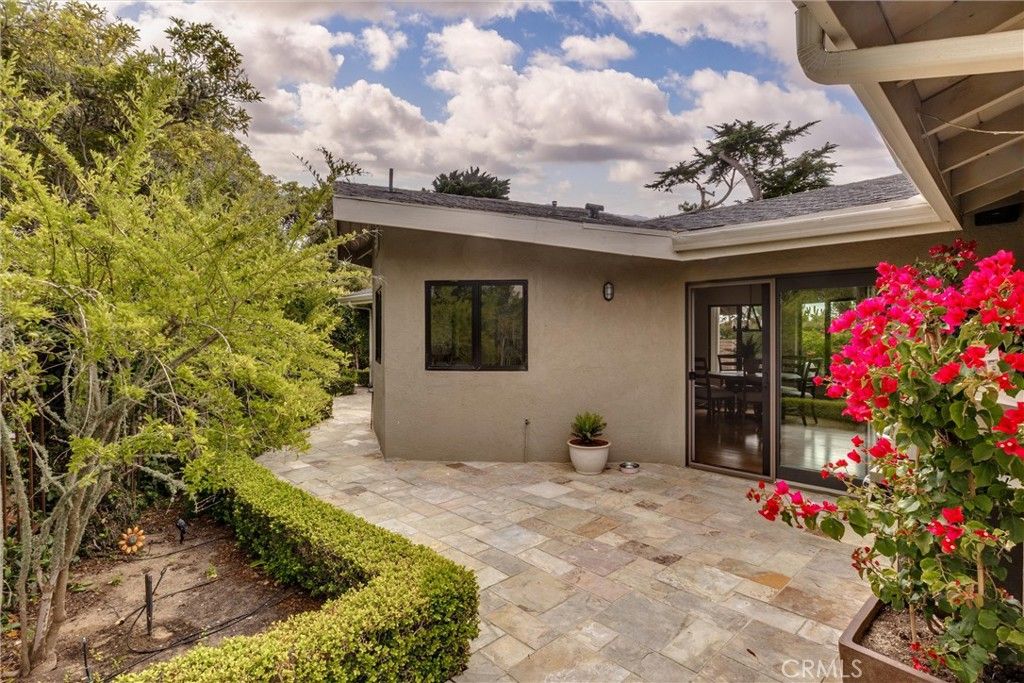 Discover this private, island-inspired sanctuary just minutes from the coast. This beautifully refreshed 2-bedroom, 2-bath home offers a serene escape with lush landscaping, multiple slate patios, and a tranquil courtyard that evokes the feeling of Hawaii. Enjoy peekaboo ocean views from your own backyard oasis. Inside, fresh interior paint and a reimagined stacked stone fireplace create a welcoming and modern ambiance. The updated guest bath adds a contemporary touch, while bamboo flooring flows through the kitchen and dining areas. The kitchen features a uniquely shaped island. Each room overlooks the patios and grounds creating a sense of true indoor-outdoor living. Vaulted ceilings enhance the open, airy feel, and a flexible bonus space Could easily be converted to a3rd bedroom, or use as home office or creative studio. Additional highlights include a 2-car garage with EV charger and plenty of storage. This one-of-a-kind property blends relaxed coastal living with style, a functionality and privacy. A must see!