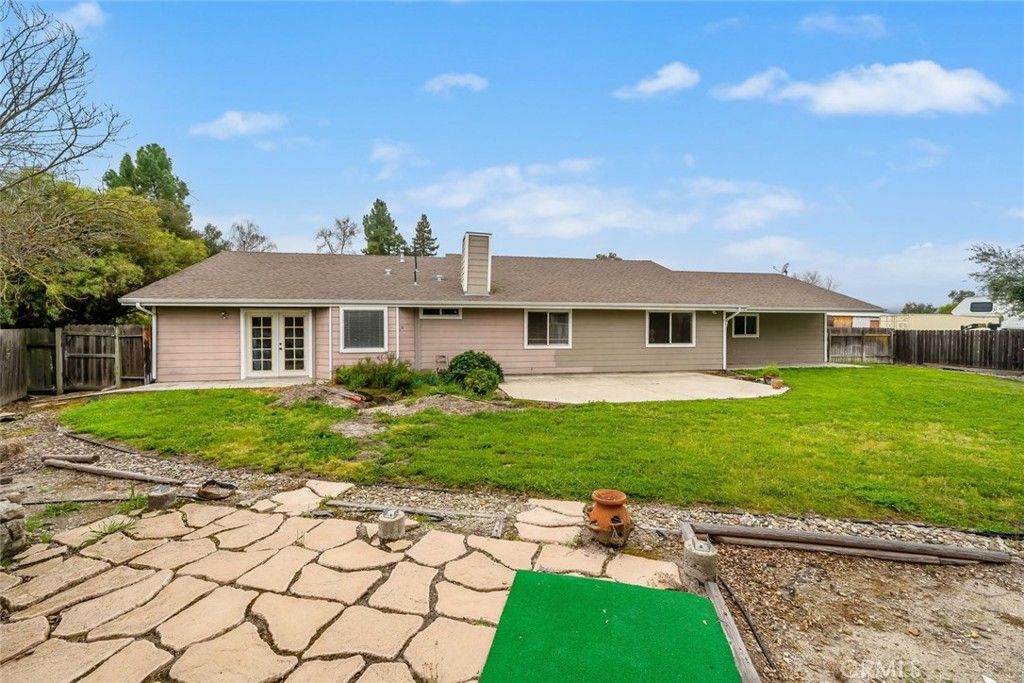 Rural vibes meet everyday convenience at this charming country retreat in the heart of Atascadero. Set back from the street for added privacy, this single-level home showcases classic farmhouse appeal with timeless dormers, gabled windows, and a welcoming covered front porch. Inside, you're greeted by soaring ceilings and abundant natural light that creates a warm and airy atmosphere. Recessed lighting, ceiling fans, and durable hard-surface flooring throughout the main living areas add both style and functionality. Thoughtful touches like electrical outlets at the living room focal point and nook for wall-mounted TVs enhance flexibility for modern living. The kitchen features abundant counter space, bar seating, stainless steel appliances, and a dual basin sink, all opening seamlessly to the dining area"”perfect for everyday living and entertaining. From the dining room, access the expansive backyard and the attached two-car garage with convenient laundry hookups. The fenced backyard offers endless possibilities, complete with a covered porch and additional concrete patio space for entertaining"”ideal for gatherings. The spacious primary suite includes a walk-in closet and a private ensuite bath with dual sink vanity, soaking tub, walk-in shower, and separate water closet. French doors provide direct access to the backyard, creating a serene indoor-outdoor connection. Two additional bedrooms and a second full bathroom with dual sink vanity and linen storage complete this thoughtfully designed, function-friendly floor plan. Situated on approximately one acre with easy freeway access and close proximity to downtown Atascadero, this property offers the best of both worlds"”country charm with city convenience. Bring your vision and make this special property your next place to call home.
