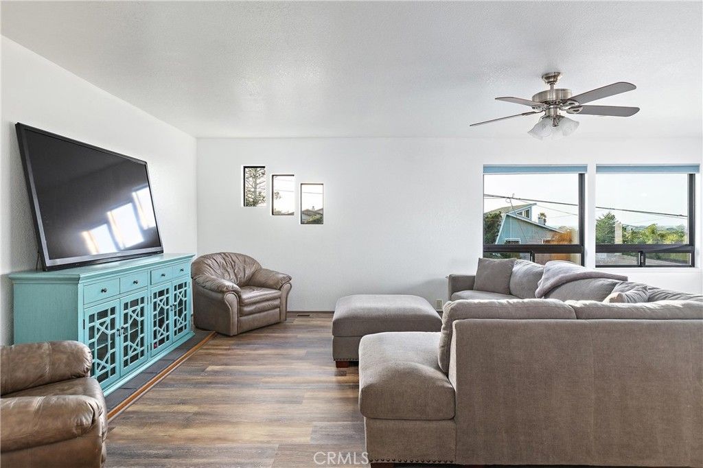 Situated on the coveted Number Streets of Los Osos, 1578 13th Street offers a rare opportunity to enjoy coastal living in a quiet neighborhood with minimal traffic. Ideally located just moments from Baywood Park, local restaurants, and grocery stores, this home blends convenience with serenity. The low-maintenance front yard features mature live oaks, artificial turf, and decorative landscape rock. A Trex deck leads to the front entry and sets the tone for the thoughtful updates throughout. The exterior has been improved with new stucco, facia, and trim, enhancing both the durability and curb appeal. Inside the home has been extensively refreshed with new flooring, fresh interior paint, new light fixtures, and ceiling fans throughout. The home is equipped with forced-air heating, a soft water system, and two on-demand hot water heaters, offering modern comfort and efficiency. The upstairs living area boasts an open-concept floor plan with stunning, unobstructed views. To the north, enjoy sweeping vistas of Morro Rock, the estuary, and sand spit stretching to Estero Point, while the south-facing side captures views of the iconic Seven Sisters mountain range. The primary view windows were replaced in 2025 with Milgard windows, maximizing both scenery and natural light. The kitchen, open to the main living area, features a large center island with stainless steel overhead hood vent, granite counters, new soft-close cabinetry, ample storage, and a new tile floor, making it both stylish and functional. The home includes four spacious bedrooms with generous closet space, large windows, fresh paint, and new flooring. The primary bedroom includes an en-suite bathroom with dual sinks and a shower. The second bathroom, near the front of the home, has been remodeled with a new shower enclosure, new flooring, new vanity with a granite counter, and is located next to a bonus area ideal for storage or a home office. The third bathroom, also remodeled, features new cabinetry with a granite counter, new flooring, a rain shower, and a bathtub. The large two-car garage features an additional workshop area and has ample room for storage or hobbies. Don't miss your opportunity to own in the charming community of Los Osos!