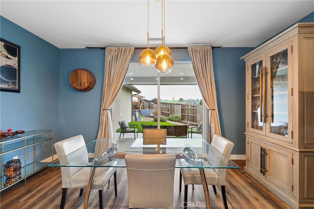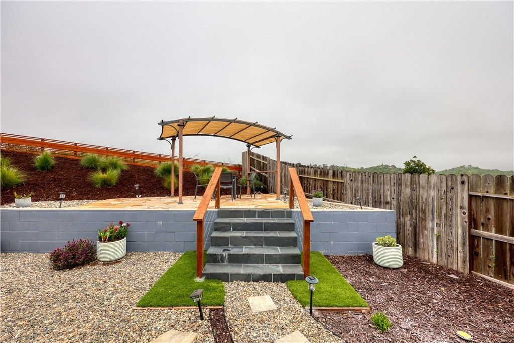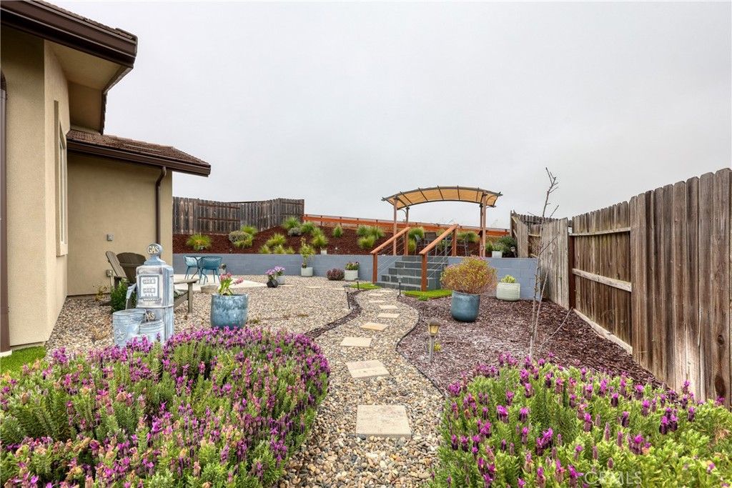 Single-level living behind the gates of the Heritage Ranch community near Lake Nacimiento. This 3-bedroom, 2-bath home offers 2,249 sq ft on a 10,128 sq ft lot with an open floor plan designed for comfort and easy entertaining. A spacious formal living room with large picture windows fills the home with natural light and flows seamlessly into the kitchen, which features granite countertops, a center island, stainless-steel appliances, and an adjoining dining area. Sliding glass doors from the dining area and family room open to the beautifully landscaped, low-maintenance backyard. This area features multiple patios and walkways, including a pergola-covered upper deck with scenic views of the surrounding hills and open space behind, ideal for relaxing or entertaining. The primary suite offers a peaceful retreat with a walk-in closet, ensuite bath, and direct access to one of the outdoor patios. Two additional bedrooms share access to a full bathroom. A walk-in pantry, dedicated laundry room, and attached 2-car garage add convenience and functionality. The thoughtfully designed yard features gravel, artificial turf, and covered patio spaces for easy maintenance and year-round enjoyment. Heritage Ranch amenities include access to Lake Nacimiento, a clubhouse, pool, and a variety of community events and activities.