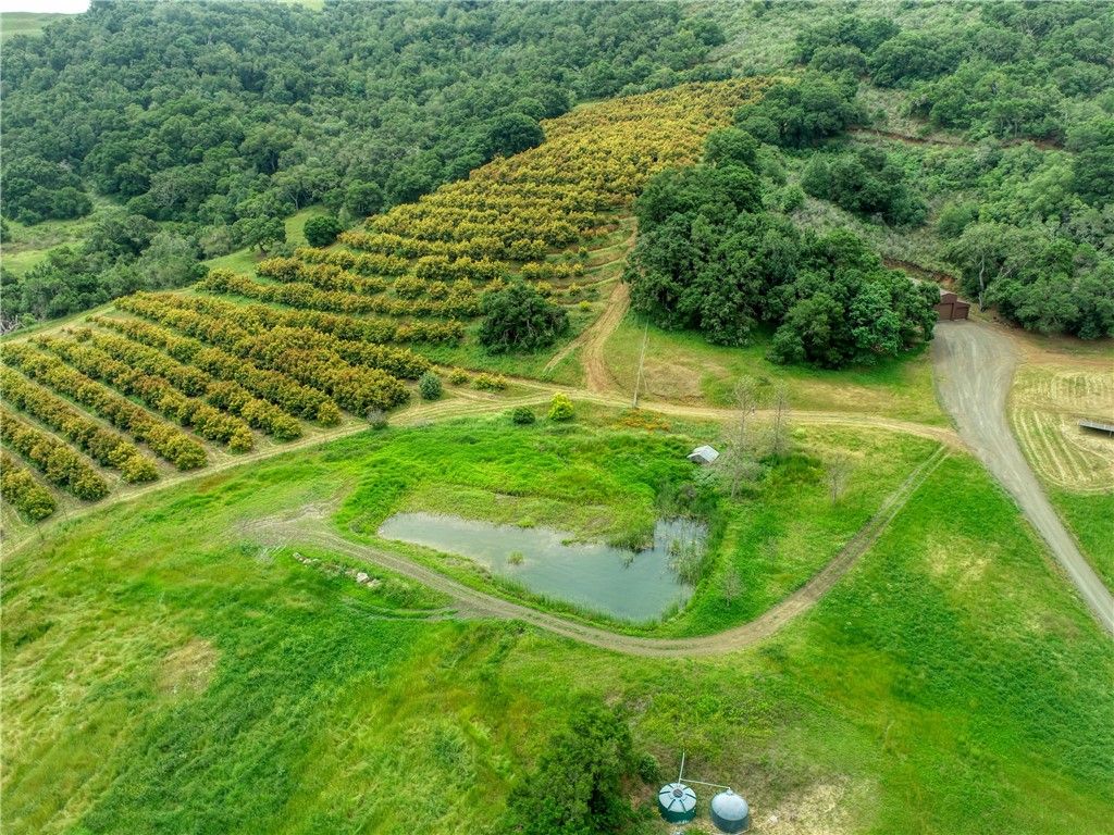 Abundant Water flows from artesian wells, filling up the 50,000 gallons of stored water at this Legacy property, in the Williamson Act for big tax benefits, your family can treasure for posterity, just 20 minutes from the beaches of the Central Coast. In the midst of some of the world's finest vineyards, the 195 Acres includes about 2/3 mile of Santa Rosa Creek, which flows all year long. 1,000 Hass avocado trees cover approximately 7 acres. The home is located near the paved road, surrounded by fruit and shade trees. The original 800 sq ft home was built in 1900! In about 2013, an 800 sq ft great room with stone fireplace and lots of windows that bring in the garden views and sunshine, was added. The home is Move In Ready. The back yard fronts the Creek, where you can sit on summer days with your feet in the creek wiling away the hours. Nearby are 2 garages and an old but functional barn, and your own solid steel and concrete bridge that leads up the hill to the newer barn, pond, orchard, solar array (14.5 Kw) and a few building sites. Up from this area are six of the total ten 5,000 gallons water storage tanks, constantly over-flowing. There are so many remarkable, special, beautiful settings for you to enjoy. At the top of the property you get an expansive ocean view spot perfect for outdoor gatherings/BBQ/etc! So much here that you will likely not want to leave.