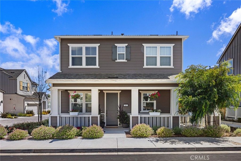 Welcome to 165 Earthwood Lane, a nearly new home in the highly sought-after Avila Ranch community of San Luis Obispo; known for its welcoming atmosphere, friendly neighbors, and thoughtfully designed surroundings. Built in 2023, this 3-bedroom, 2.5-bath residence offers approximately 1,808± sq ft of beautifully appointed living space, complete with modern finishes and owned solar. The light-filled main level features 10-foot ceilings, wood-look tile flooring, and an open-concept design that seamlessly connects the living room to the outdoor patio, perfect for effortless indoor-outdoor living. The kitchen is both stylish and functional, showcasing quartz countertops, a subway tile backsplash, gray shaker cabinetry, a contrasting white island with bar seating, stainless steel appliances, and a spacious pantry. It flows naturally into the adjacent dining area, ideal for both everyday living and entertaining. Upstairs, the primary suite offers a peaceful retreat with large windows, a walk-in closet, and a well-appointed bathroom featuring dual vanities and a tile shower. Two additional bedrooms share a thoughtfully designed adjoining bathroom with dual sinks and a separate tub and shower area. A dedicated laundry room with washer and dryer, along with a hallway linen closet, adds everyday convenience. Outdoor living is equally inviting, with a charming, covered wrap-around front porch and a low-maintenance enclosed side yard complete with a paver patio, perfect for relaxing or hosting. Ideally located just steps from Sunny Vista Park, residents can enjoy multiple play structures and a basketball court right outside their door, enhancing the home's appeal for recreation and community connection. Additional highlights include a main-floor powder room, under-stair storage, an attached two-car garage, electric heating and air conditioning, and energy-efficient solar. Located near parks, scenic trails, shopping, and dining, this home offers the very best of Central Coast living in one of San Luis Obispo's most beloved neighborhoods.