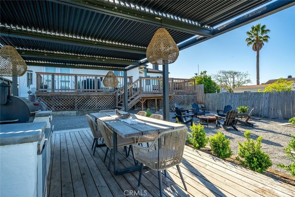 Beautifully updated 3-bedroom, 2-bath home, ideally located just a few blocks from the beach on a spacious R2 lot. Whether you're seeking multi-generational living or an opportunity to offset your mortgage with rental income, this property offers exceptional flexibility. The front of the home welcomes you with a bright, open-concept kitchen designed to impress"”featuring quartz countertops, solid wood cabinetry, a farmhouse-style stainless steel sink, sleek tile backsplash, and a large skylight that fills the space with natural light. Two well-appointed bedrooms and a full bathroom with a solid wood vanity complete this section, with one bedroom offering direct access to a private patio. The back of the home opens up to a stunning flex space with its own private entrance"”perfect as a guest suite, second living area, or oversized primary retreat. This inviting space showcases exposed wood beam ceilings, a cozy tile fireplace, and seamless indoor-outdoor flow to an expansive back deck. The generously sized back bedroom features new French doors and west-facing exposure, capturing ocean breezes and sunset light. An updated kitchenette with stainless steel appliances and subway tile backsplash adds even more convenience. Unwind in the spa-inspired bathroom, complete with a double farmhouse vanity and a walk-in rain shower. Additional highlights include a dedicated laundry room, multiple French doors leading to the backyard, and peek-a-boo ocean and dune views"”with potential for panoramic ocean vistas from a future second story (buyer to verify). Upgrades throughout include Milgard Tuscany windows and doors, luxury vinyl plank flooring, recessed lighting, modern fixtures, and energy-efficient HVAC system with AC mini split for independent climate control of front and back of home. Outside is an entertainer's dream backyard"”featuring a covered dining patio, built-in BBQ area with smoker, warming drawer, and beverage refrigerator, plus a spacious seating area ideal for a fire pit. The lush lawn provides plenty of room for outdoor activities and relaxation. A rare opportunity to enjoy coastal living with built-in flexibility and future potential"”schedule your private showing today!
