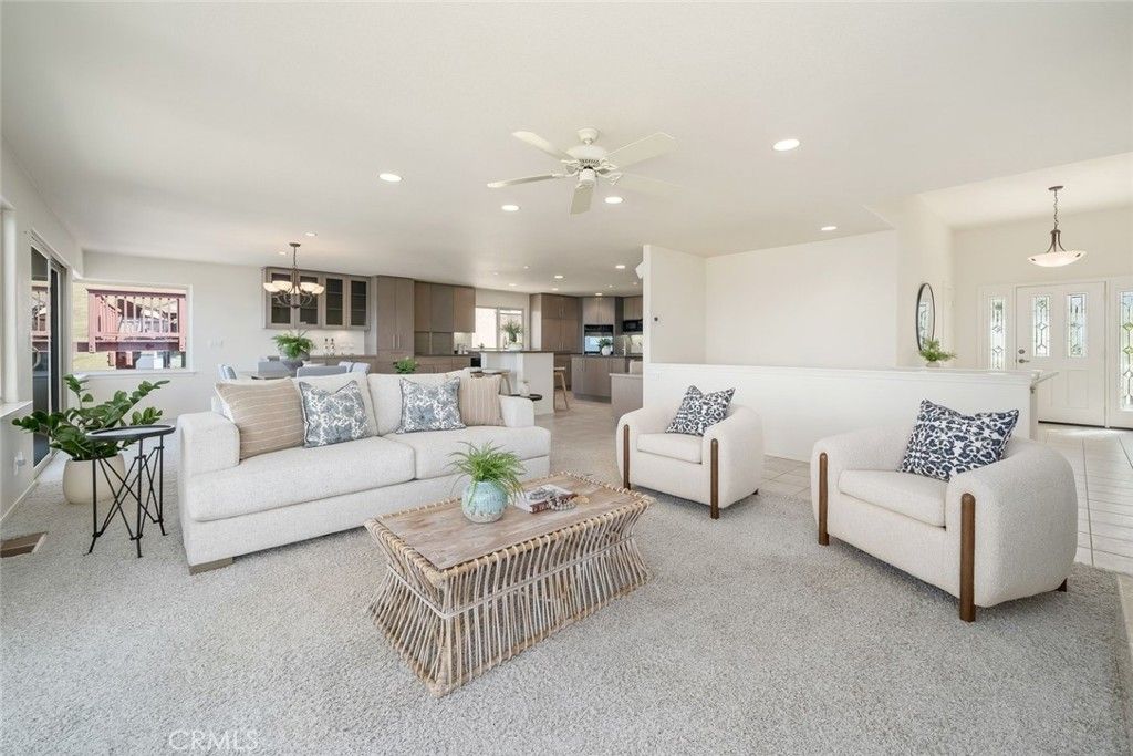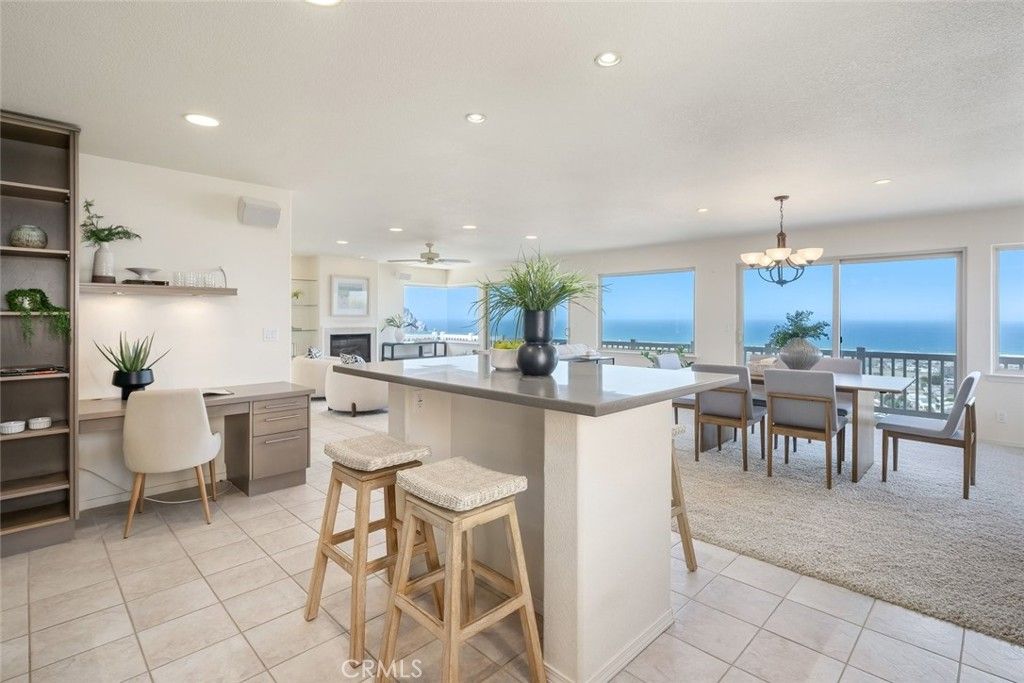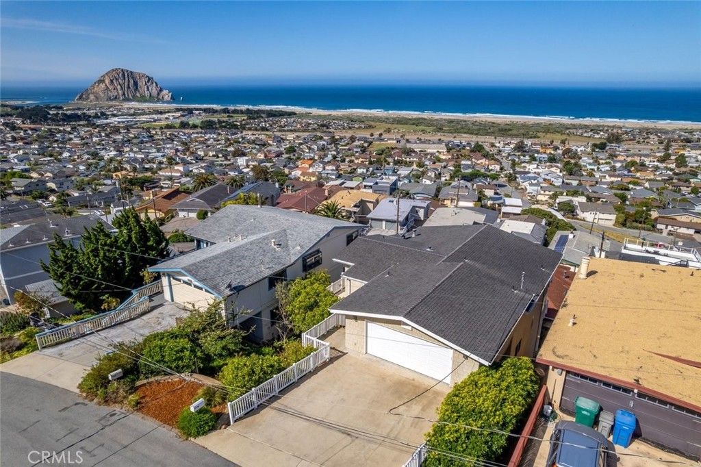 Perched in Morro Bay Heights, this beautifully designed custom built home has unparalleled ocean views of Morro Rock and the Pacific Ocean! With 2,508 sq ft, this property offers 3 bedrooms and 2.5 bathrooms on a 4,000 sq ft lot. The "Wow" factor of this home with its unobstructed views, delivers one of the city's most breathtaking coastal panoramas.The main living level is bathed in natural light with large windows and slider doors that frame the gorgeous ocean views. The open floor plan connects the living room, dining area, and kitchen. The spacious and thoughtfully designed kitchen features modern-style cabinetry, tile flooring, a center island, a separate bar/prep area, a walk-in pantry and a built-in desk/workspace. All three bedrooms are located on the lower level and two include full ocean views, each with a slider door opening to a view deck.The primary bedroom includes a large walk-in closet and ensuite bathroom. Additional features include a two-car garage with ample storage and a separate laundry room with a sink and door to the exterior. This exceptional property should not be missed! Information not verified.