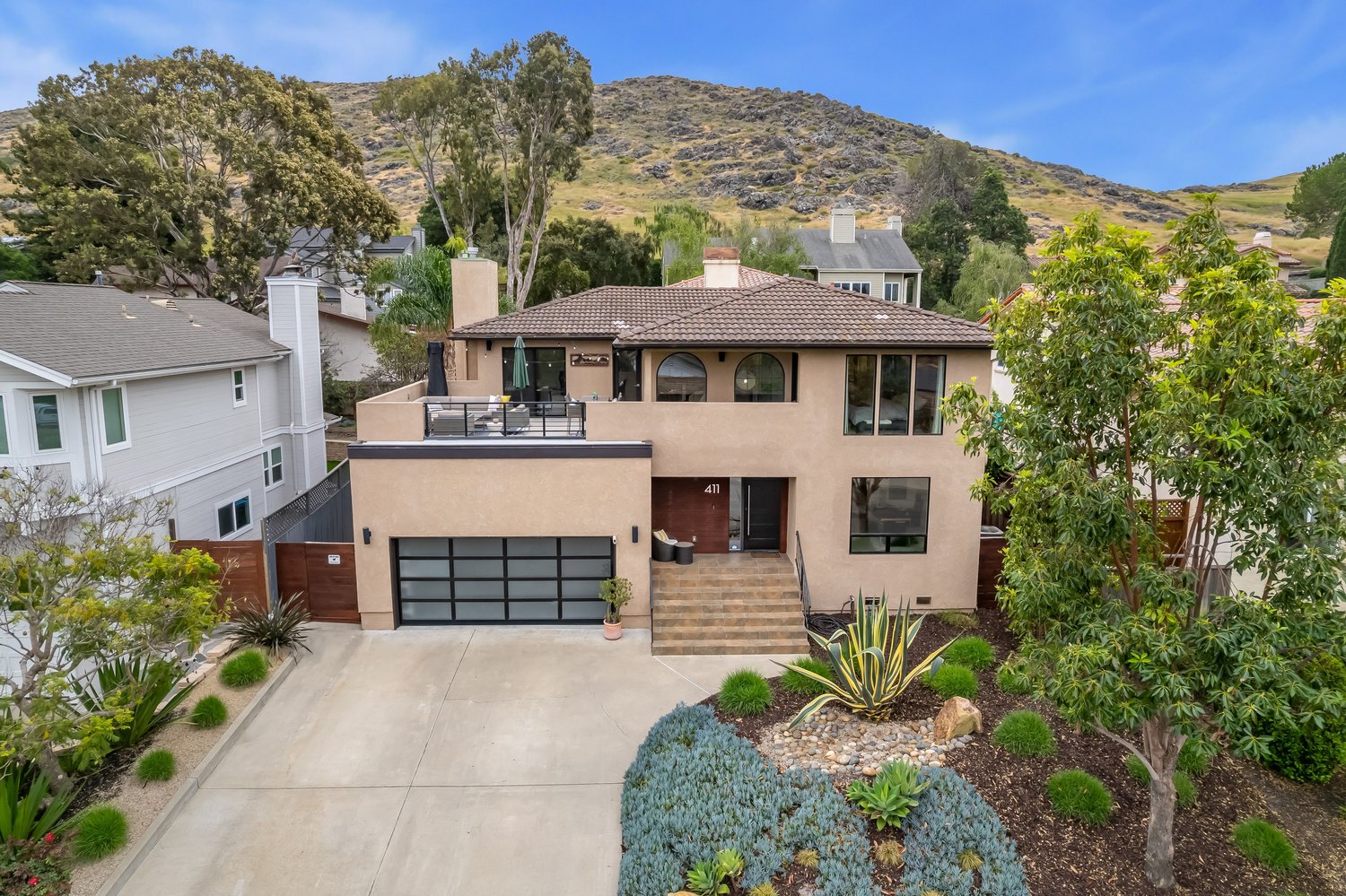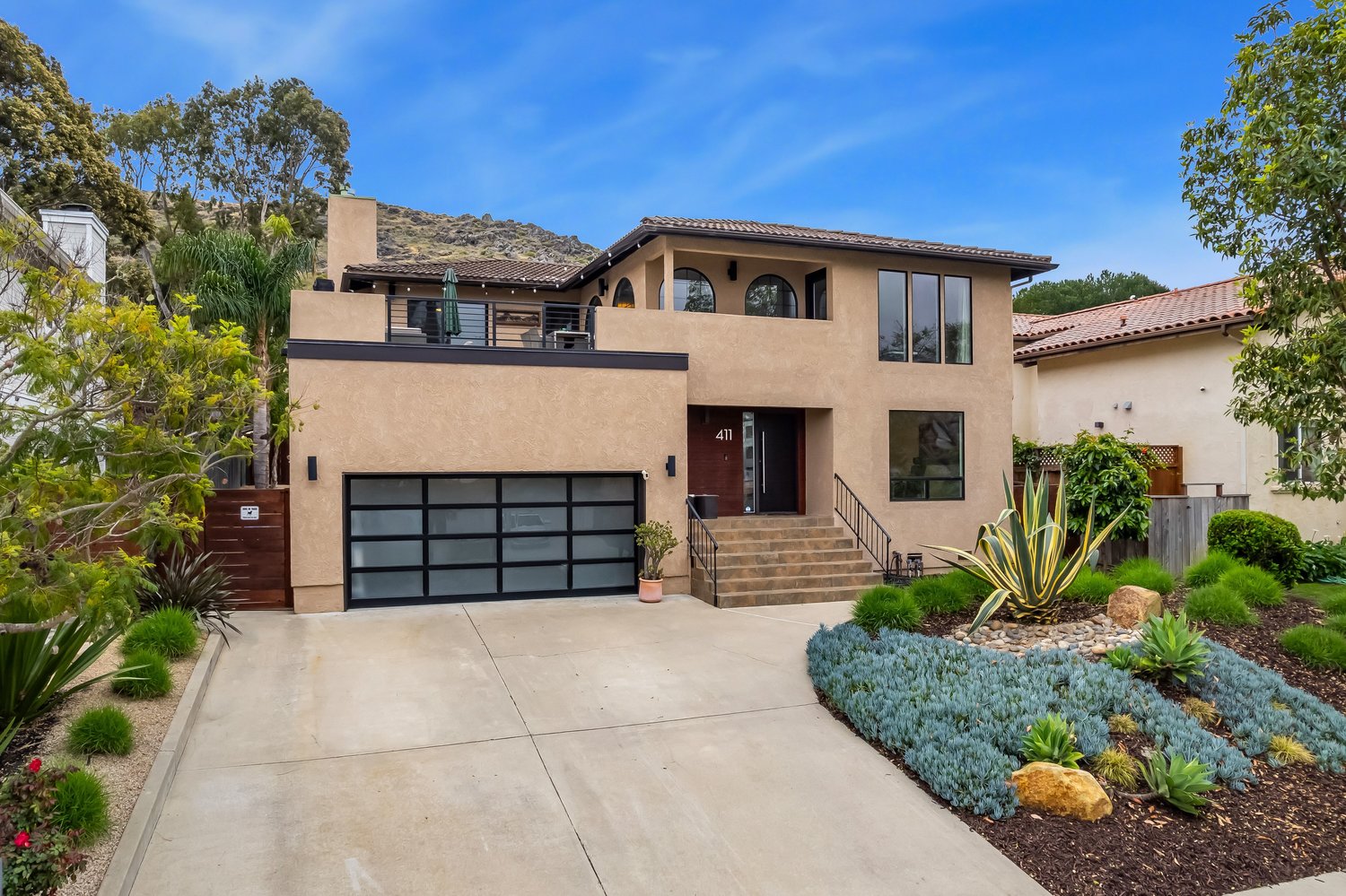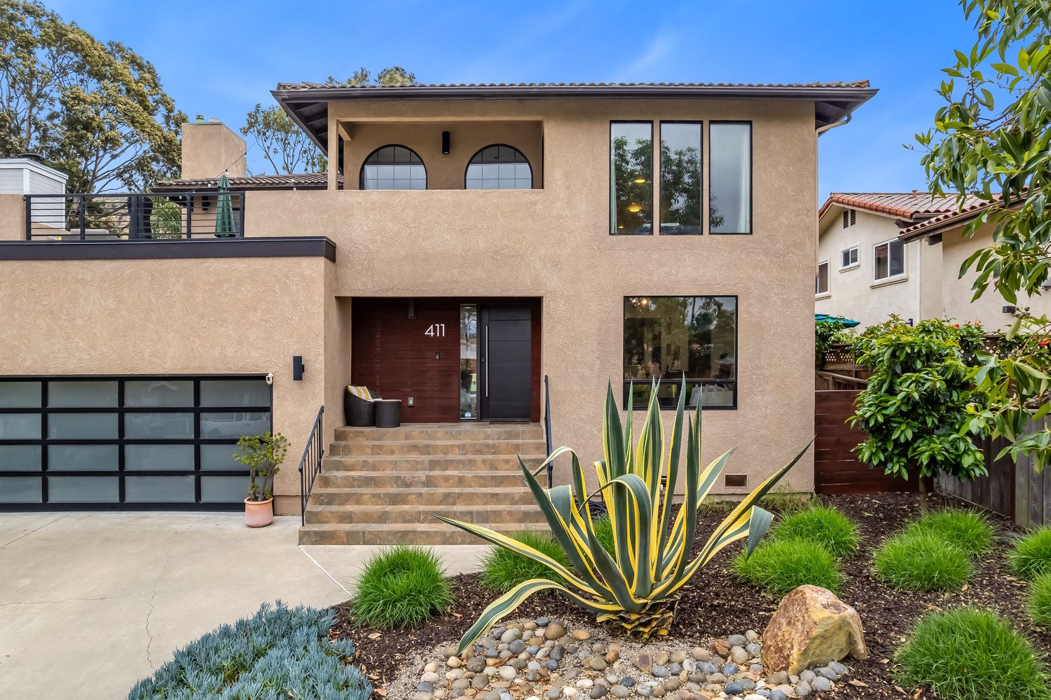 With striking modern curb appeal, clean architectural lines, a contemporary glass garage door, and drought-resistant landscaping, this home truly stands out. All of this is set in a peaceful neighborhood just moments from town, parks, and trails—offering the perfect balance of tranquility and convenience.