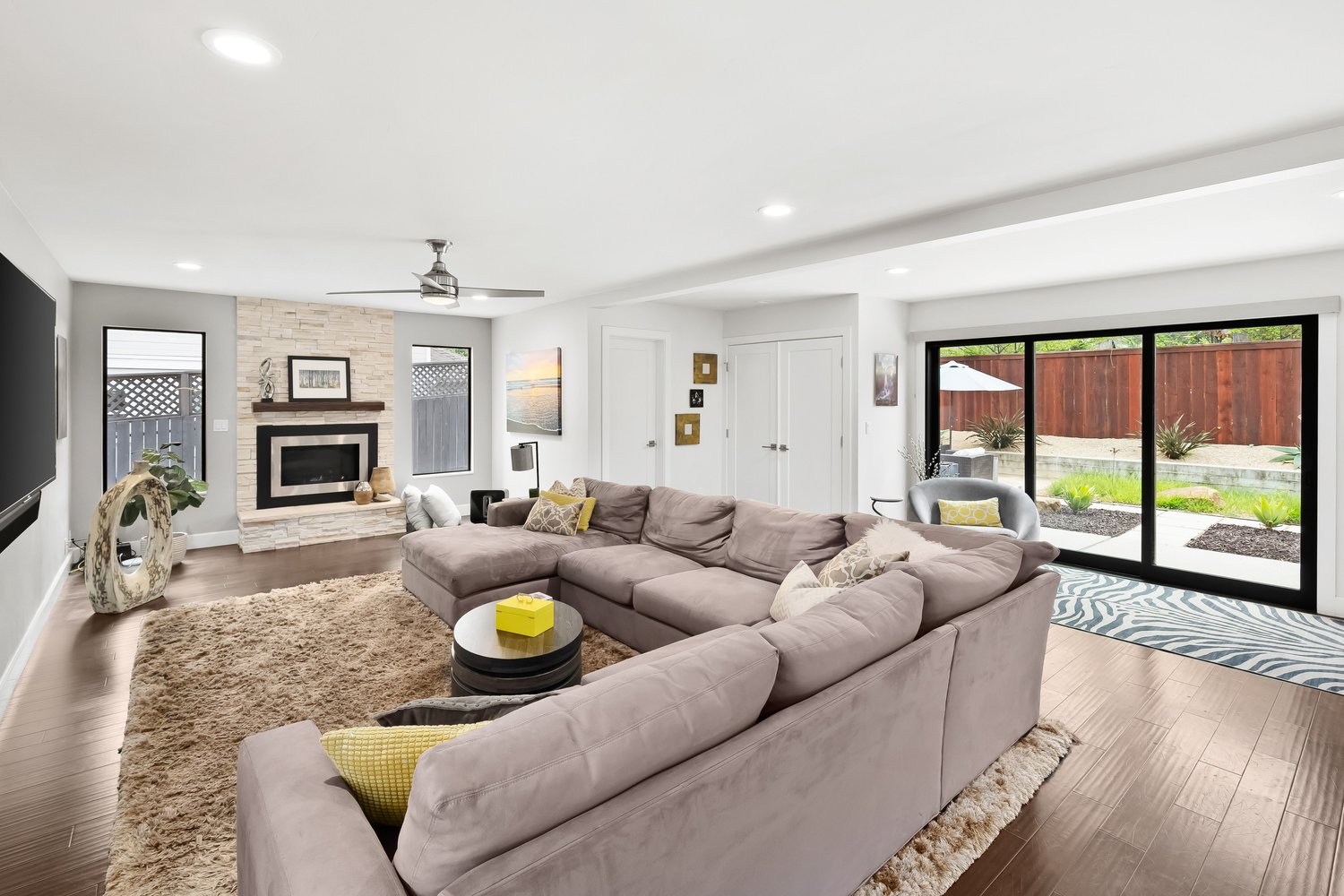 - Fully remodeled interior with high ceilings and designer finishes throughout