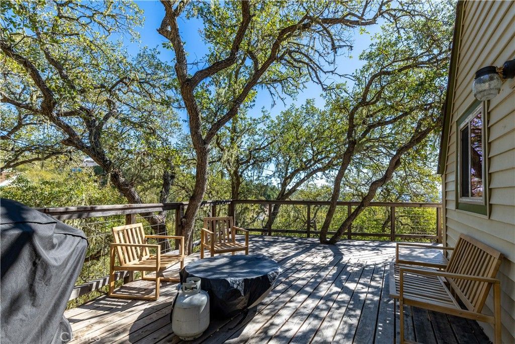 Nestled in the serene hills of the Oak Shores community at Lake Nacimiento, this one-of-a-kind updated dome house offers a perfect blend of architectural uniqueness, modern comfort, and breathtaking natural beauty. The iconic geodesic dome design not only turns heads but also provides exceptional energy efficiency and panoramic views from every angle. Step inside to an open-concept layout perfect for seamless entertaining, with fresh finishes, ample natural light, and a layout that feels both expansive and intimate. From sleek kitchen countertops and updated appliances to refreshed bathrooms and flooring, every detail has been curated for contemporary style without sacrificing the home's charm. The main living area features walls and ceilings finished in reclaimed redwood with a cast-iron wood-burning stove. Multiple newly installed mini-split units deliver efficient heating and cooling. The kitchen offers marble countertops, a hammered copper sink, stainless steel appliances, breakfast bar seating, a large pantry behind barn-door detailing, and high-end finishes throughout. On the upper level (loft) you'll find an additional bedroom/entertainment area plus a fully-remodeled large bathroom. On the main living level are two spacious bedrooms, updated adjacent bath with walk-in shower, and mirrored closets with ceiling fans for comfort. Perched up the hill on a generous lot, enjoy unobstructed vistas of the surrounding oak-dotted landscapes. The home boasts an oak-shaded back deck with views of the surrounding woodlands "” perfect for lounging, entertaining or soaking in nature. The home has a newer roof and vinyl siding and a hot-tub pad is already in place. The garage has two unfinished rooms ready to be turned into additional livable space as well. This house would make a great Vacation Rental, personal home, or vacation home! As part of the exclusive Oak Shores community, you'll have easy access to Lake Nacimiento's world-class fishing, watersports, and trails, plus proximity to Paso Robles' renowned wineries and dining"”all while embracing the peaceful, rural feel. The community has it's own Marina, 2 launch ramps, pool, community center, mini-golf course, pickleball courts, and basketball court.