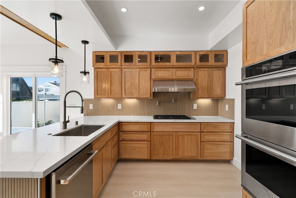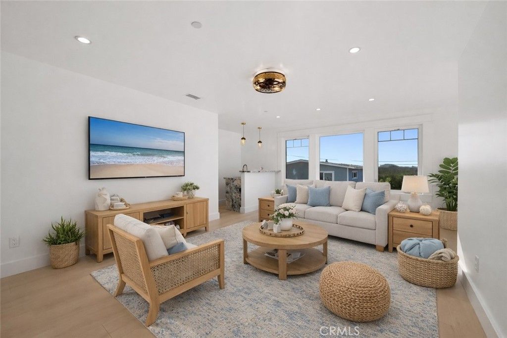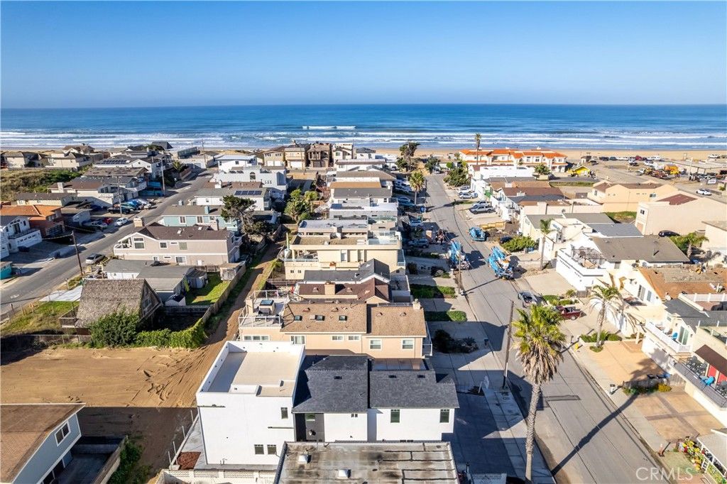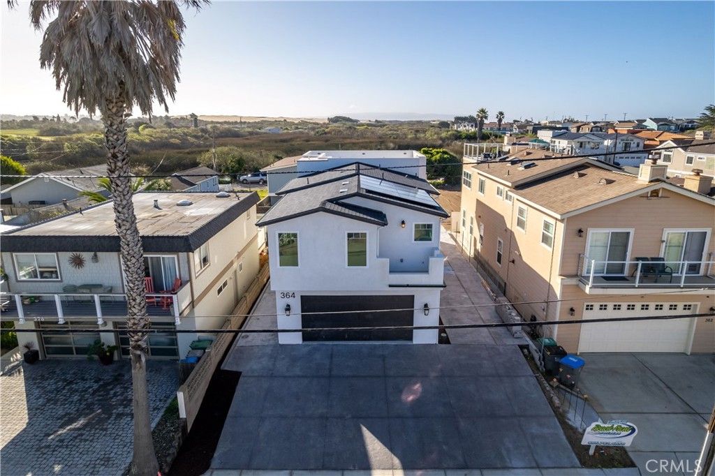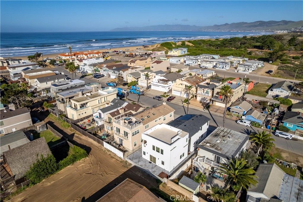 Experience the pinnacle of coastal living in this brand-new custom home, just completed by Beach Front Builders and ideally located in an exclusive neighborhood at the gateway to Pismo State Beach, with beach access just down the street. Set on an oversized 4,300± sq. ft. lot with 43 feet of road frontage, the property offers exceptional functionality, including a stamped concrete driveway, generous parking, and a dedicated side area equipped with an RV waste line. The main living level is designed as a cohesive, open-concept space connecting the living room, dining area, and kitchen. Wide-plank flooring, a coffered ceiling with wood beam accents, recessed lighting, and a modern gas fireplace create a refined yet comfortable atmosphere. Two large sliding doors open to the backyard and stamped concrete patio, allowing for seamless indoor-outdoor living. The kitchen is both elegant and functional, featuring double wall ovens, a six-burner gas cooktop with pot filler, quartz countertops, bar seating, custom cabinetry, and an oversized sink with professional-style faucet. A thoughtfully designed butler's pantry provides additional counter space and storage, with room for small appliances and a wine fridge. The lower level includes a private bedroom with en suite bath and a separate guest bathroom, making it ideal for guests or multigenerational living. A large interior space was intentionally constructed to accommodate a future elevator, offering flexibility for long-term use. Upstairs, a spacious family room with a wet bar opens to a balcony and enjoys views overlooking the lagoon and dunes. Three additional bedrooms are located on this level, including the primary suite, which features his-and-hers walk-in closets, a private balcony, and a dedicated makeup and vanity area. The primary bath includes a generous soaking tub, dual sinks, and a walk-in shower. An additional upstairs guest bathroom mirrors the home's elevated finish level. A standout feature is the private rooftop deck, offering an elevated outdoor space ideal for entertaining, relaxing, and enjoying the surrounding coastal setting, including peekaboo ocean views. Additional features include owned solar, tankless hot water, and modern mechanicals with heat pump HVAC. Located minutes from Pismo Beach, shopping, golf courses, and the Central Coast's renowned wineries, this property offers a rare opportunity to own a thoughtfully designed coastal retreat.