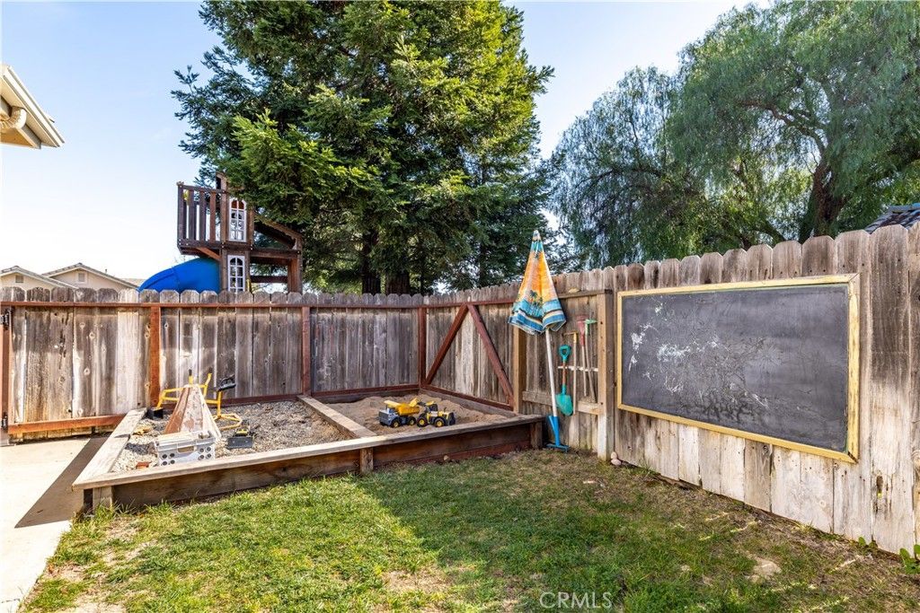 Welcome to 1212 Mariah Lane. This single-level, 1819 +/- square foot home is nestled in a highly sought-after neighborhood in Paso Robles. Situated just 1 mile from downtown in a quiet cul-de-sac, this home offers easy access to dining, shopping, and entertainment. With 4 bedrooms, 2 bathrooms, enter this home through the beautiful newer glass front door with retractable screen to the open floor plan, ideal for entertaining. The bright kitchen features updated light fixtures, beautiful granite countertops, a newer double-oven and dishwasher, garden window and counter-seating. The living area includes a ceiling fan, recessed lighting, surround-sound system & gas-fireplace. Just off the living and main bedroom, step outside the sliding glass doors to a large, insulated-covered, composite deck ideal for relaxing and hosting gatherings with a ceiling fan, speakers, recessed lighting and a contemporary lighted-railing. In addition, an outdoor shed, charming sandbox and playhouse add to the many amenities this outdoor space has to offer. West-facing views can be enjoyed for quiet coffee mornings or beautiful evening sunsets. This neighborhood offers open space and walking trails perfect for nature lovers. Experience the perfect blend of comfort, convenience, and community in the heart of Paso Robles. Don't miss the opportunity to make 1212 Mariah your new home.