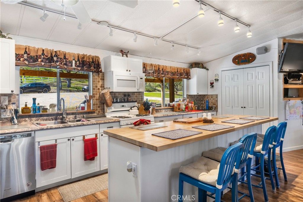 LAKEFRONT, LAKEFRONT, LAKEFRONT! this property enjoys a great location on the Lake just before the Las Tablas Narrows. Extending into the water to a low elevation the Lake will be accessible for a long time during the season as the levels drops. The manufactured home is designed for Lake fun and is able to host a large gathering of family and friends with a 945 sq ft. screened room & deck, all with views of the water through the trees. And for overflow, there is a smaller 2 bedroom, 1 bath mobile a short distance away. But truly one of the best features is the two level dock with its outriggers for boat mooring. Concrete steps lead down to it and into the water so it is accessible at many different lake elevations. The property is well-equipped for the area's limited groundwater conditions with three large water tanks. A 1064 sq ft metal drive-through garage and a detached three stall carport provide great storage for boats vehicles, and lake gear. Offered furnished, a Buyer can also choose the Ford truck (great for launching the boat at the nearby Running Deer ramp), two SeaDoos, and a Maxum 21' open bow with a 305 Chevy, wake board, trim plates & tower