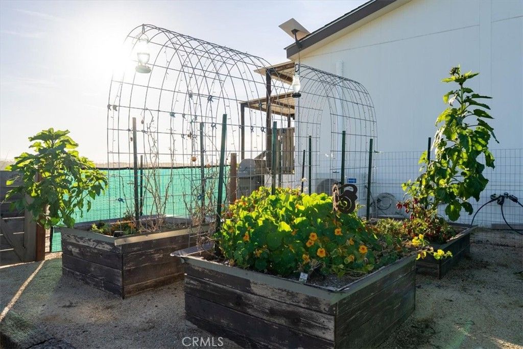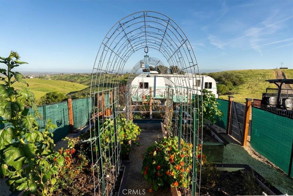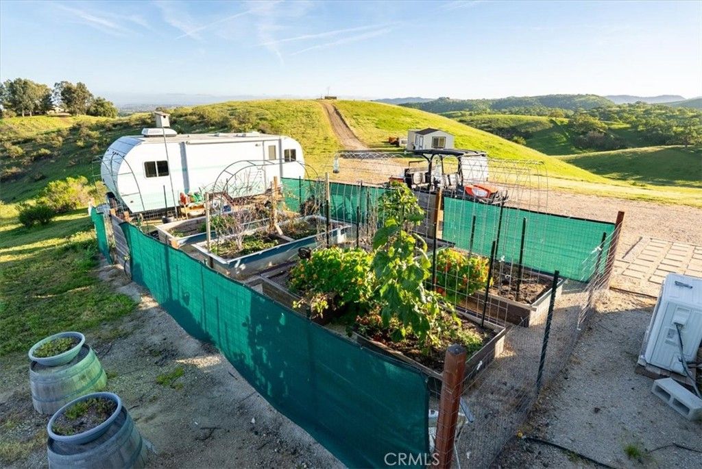 Set on 36.97± acres in Paso Robles, this private hilltop property offers sweeping views and a thoughtfully designed off-grid lifestyle. Completed and signed off by the county in 2022, the home and infrastructure provide modern efficiency while embracing the quiet beauty of the surrounding landscape. The residence welcomes you through a foyer entry that opens to the living room and kitchen, where bright natural light fills the space and large windows frame the expansive countryside beyond. A covered front porch extends the living area outdoors, creating an ideal setting to enjoy the property's remarkable vistas and peaceful surroundings. The home includes a primary bedroom with en-suite bathroom and closet, a second bedroom, and a laundry room conveniently connected to the kitchen, offering practical everyday functionality. Designed for sustainable living, the property operates fully off-grid with a 4.875 kW solar system, battery backup, and generator input, all fully owned. A strong private well, with the current pump rated at 7 gallons per minute and previously tested with a 100-gpm pump (documentation available), provides reliable water for the home and land. Outdoor features enhance the property's rural lifestyle. A fenced garden area with six raised beds sits adjacent to the home, while newly planted fruit trees, 24 Cabernet grapevines, and olive trees add to the agricultural charm and future potential of the land. Plans are also available for a future single-level residence with an attached garage and wraparound deck, offering an opportunity to expand or further enhance the property while taking full advantage of the surrounding views. With its exceptional privacy, expansive acreage, and incredible panoramic views, this Paso Robles property offers a rare opportunity to enjoy a self-sufficient lifestyle surrounded by the natural beauty of California's Central Coast.